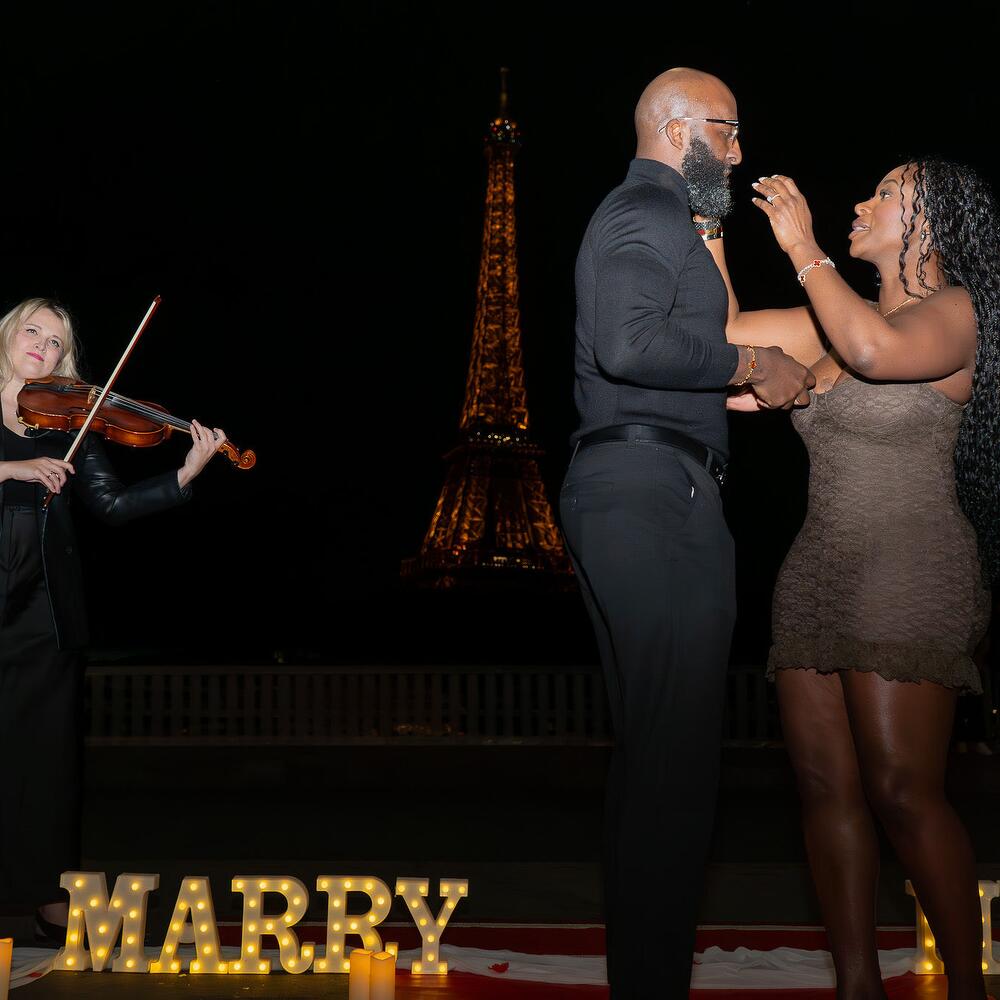 small letters marry me, 2 carpets, candles and flowers around includes violinist and professional HD photographer