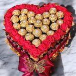 Ce magnifique cœur sucré est une véritable déclaration d’amour gourmande ! Composé de délicieux Ferrero Rocher soigneusement disposés au centre, entourés de roses rouges éclatantes, il crée une combinaison parfaite de raffinement et de douceur. L’élégant ruban bordeaux et le délicat motif de papillon en or ajoutent une touche de sophistication et d’élégance. Parfait pour toutes les occasions spéciales, ce cadeau saura enchanter vos proches avec sa beauté et son goût délicieux. Idéal pour la Saint-Valentin, un anniversaire ou tout simplement pour dire je t’aime. Offrez un moment sucré et inoubliable avec ce cœur gourmand qui ravira les papilles et le cœur !