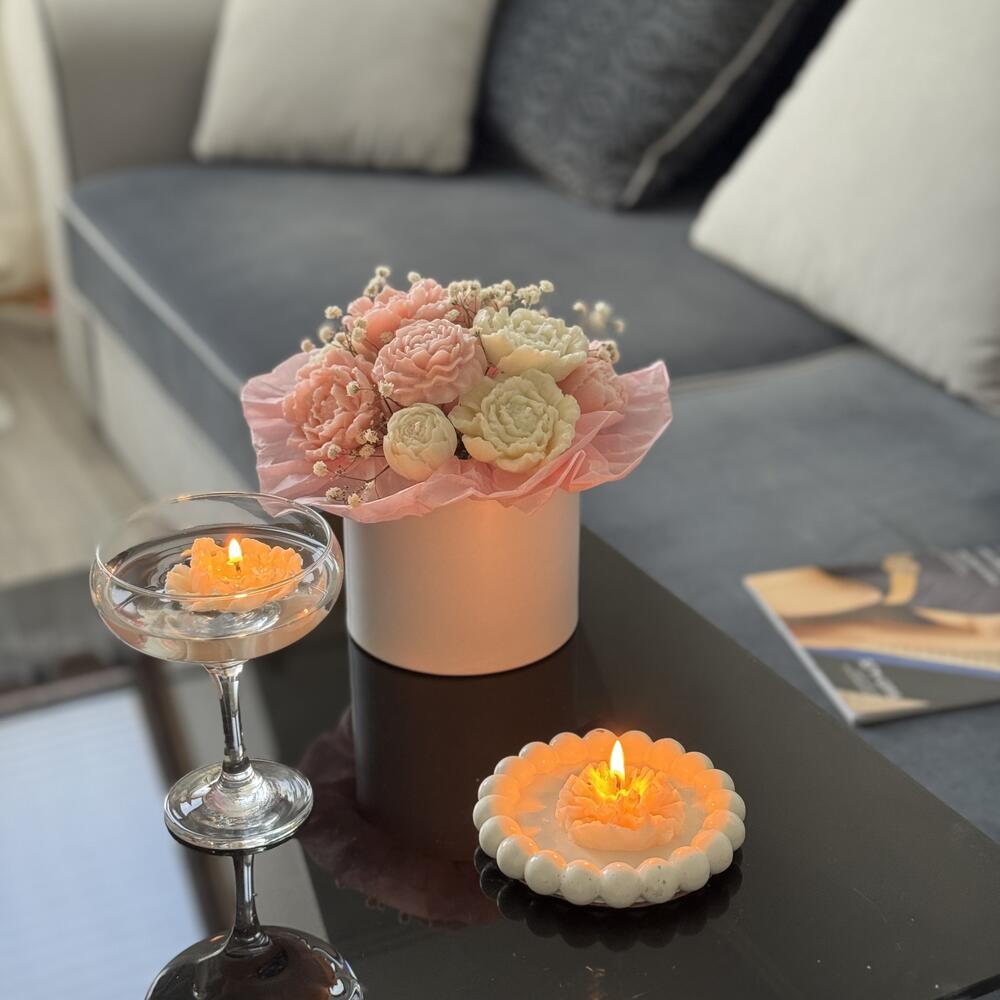 Une composition dans une boîte de fleurs parfumées, pour la décoration, à utiliser comme bougies, en retirant dune brochette, peut être utilisée comme fondants