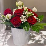 gypso - 3 pcs lisanthus - 5 pcs rose rouge - 10 pcs sakal - 5 pcs