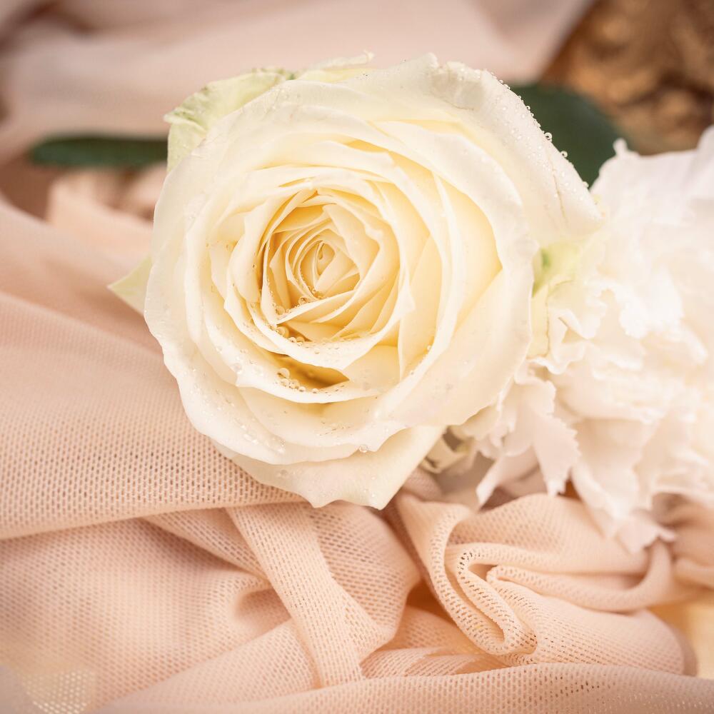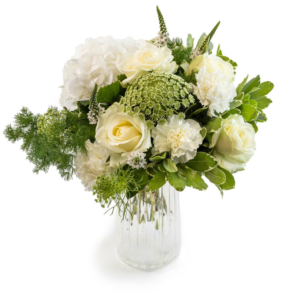 green trick - 3 pcs rose blanche - 5 pcs oeillet blanc - 3 pcs alstromeiria blanc - 3 pcs