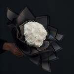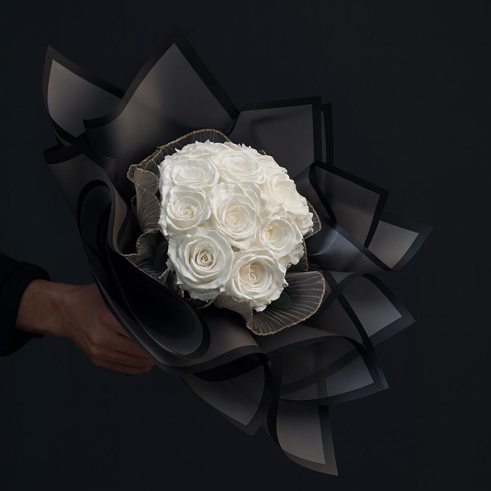 Un bouquet composé de 10 roses éternelles blanches sur tiges
