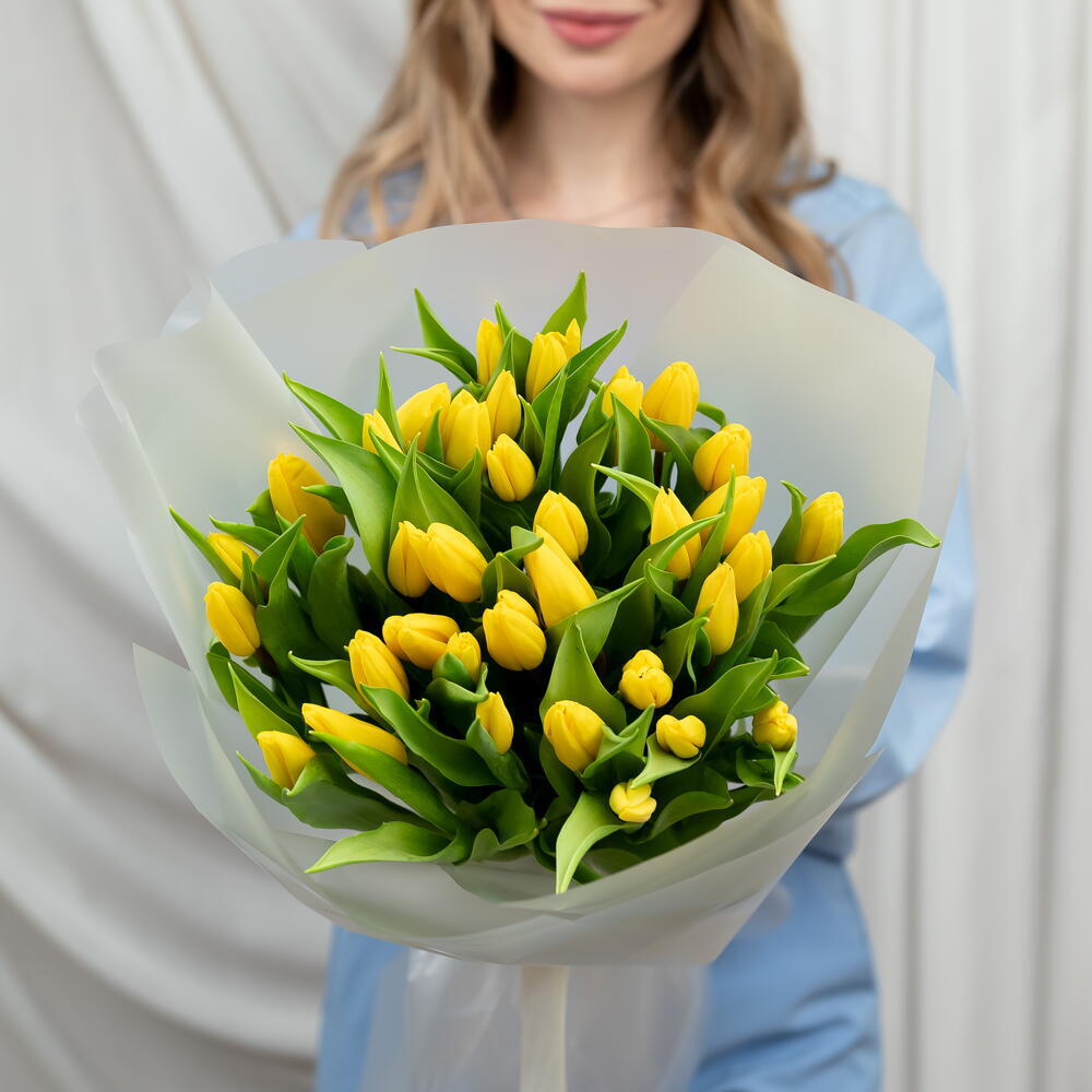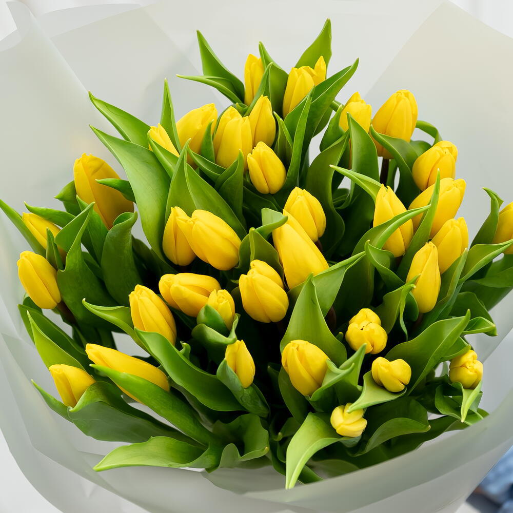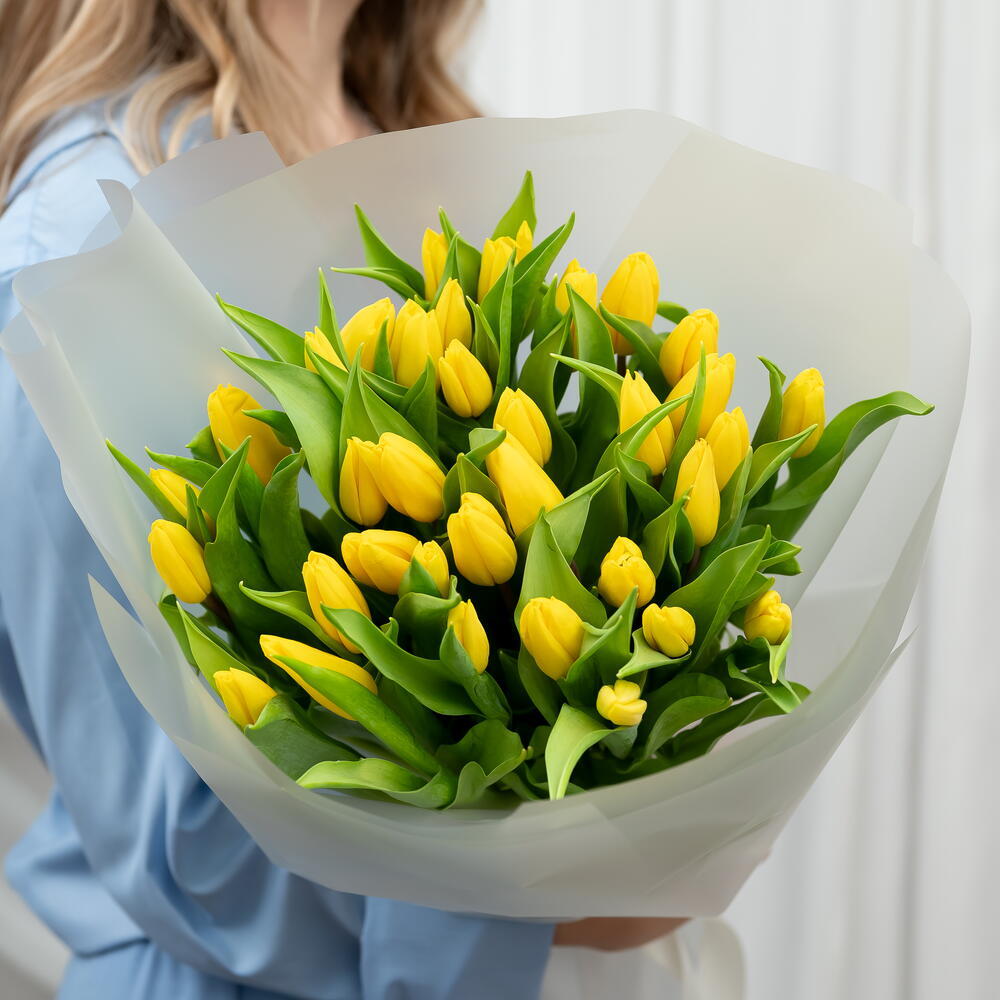 Un impressionnant bouquet de 35 tulipes jaunes éclatantes, disposées dans une composition luxuriante et élégante. Enveloppées dans un papier translucide délicat, ces fleurs fraîches créent une présentation lumineuse et joyeuse, symbolisant la chaleur, l’amitié et le bonheur. Un cadeau généreux et réconfortant, parfait pour célébrer, féliciter ou simplement apporter un rayon de soleil dans la journée de quelqu’un.