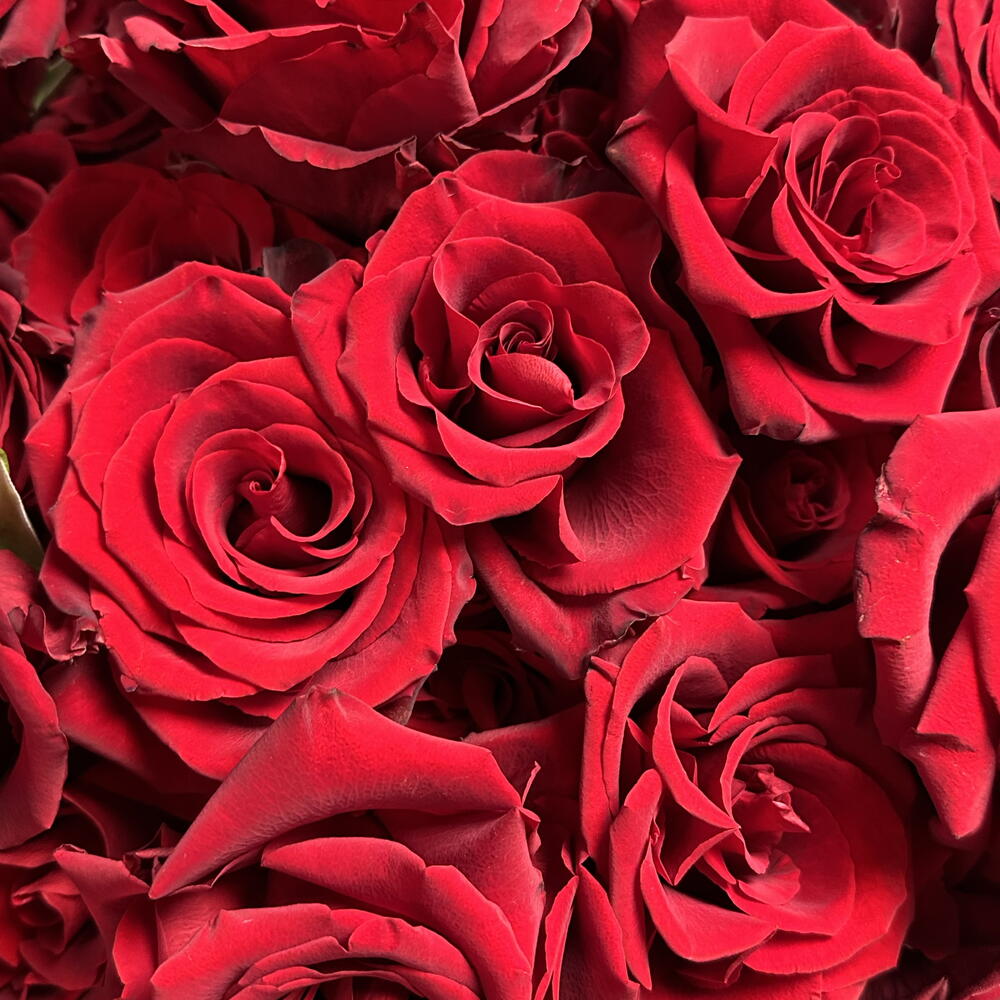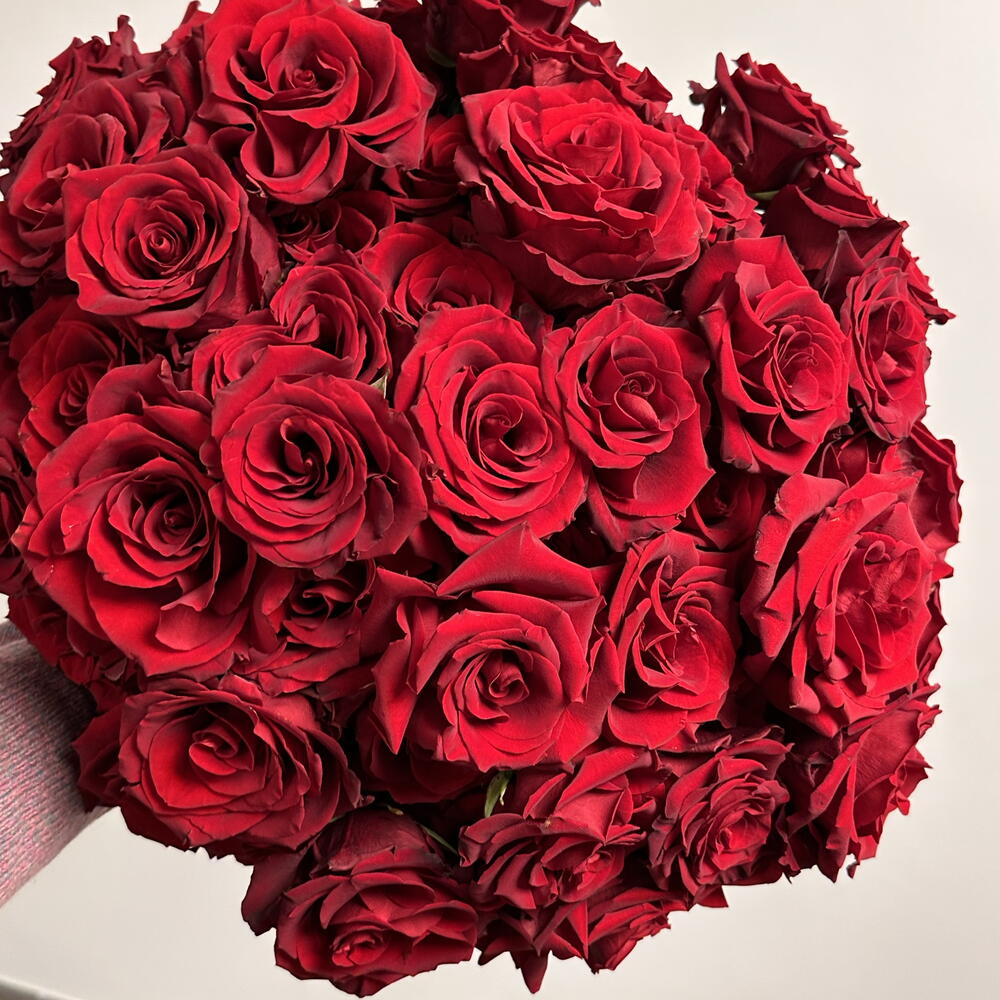 Bouquet of hand-reflexed burgundy roses
