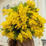 A delicate bouquet of soft yellow mimosas, their feathery blooms exuding warmth and joy. Each stem is a burst of sunshine, bringing a cheerful and fragrant touch to any occasion. The gentle golden hue of the mimosa flowers is complemented by lush greenery, creating a perfect balance of elegance and freshness. This bouquet captures the essence of spring, evoking feelings of happiness and renewal, making it a timeless gift for someone special.