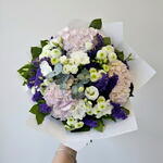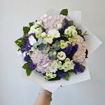 Un bouquet délicat aux nuances pastel de lavande, blanc et vert tendre, qui évoque douceur et sérénité. Sa composition harmonieuse et élégante est parfaite pour offrir un moment de calme, de tendresse et de raffinement à vos proches.