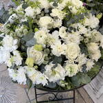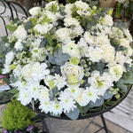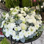 Astrantia - 1 pcs Eucalyptus - 1 pcs Alstroemeria - 1 pcs œillet - 1 pcs chrysanthèmes - 1 pcs rose blanche - 1 pcs