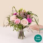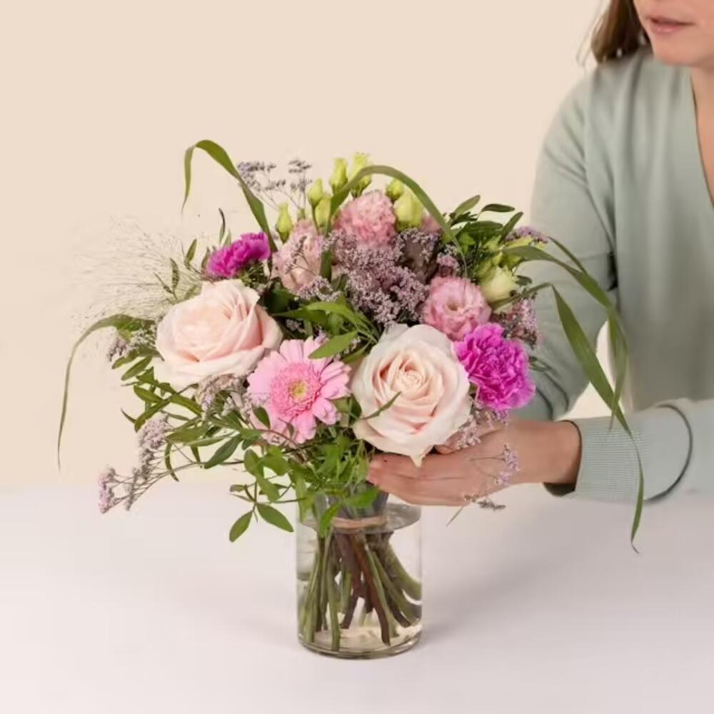 rose - 5 pcs aucaliptus - 7 pcs emballage cadeau - 4 pcs ruban satiné - 3 pcs luntisque - 5 pcs gipsophil - 5 pcs oillet brancheau - 5 pcs veto - 5 pcs