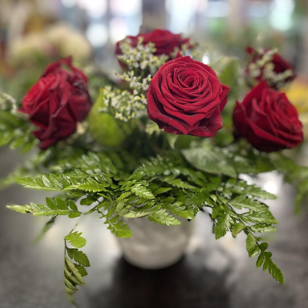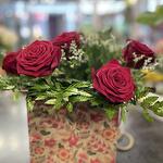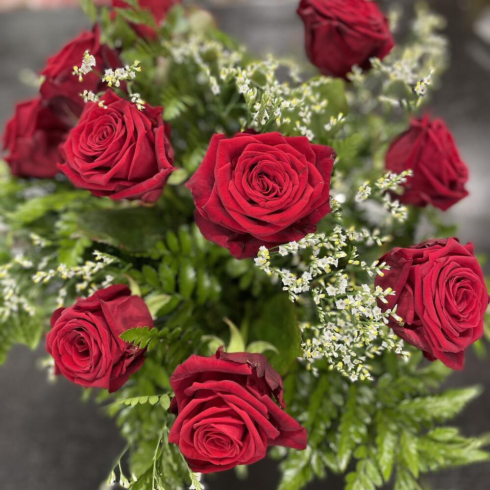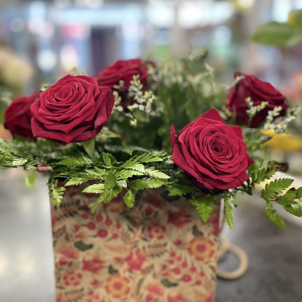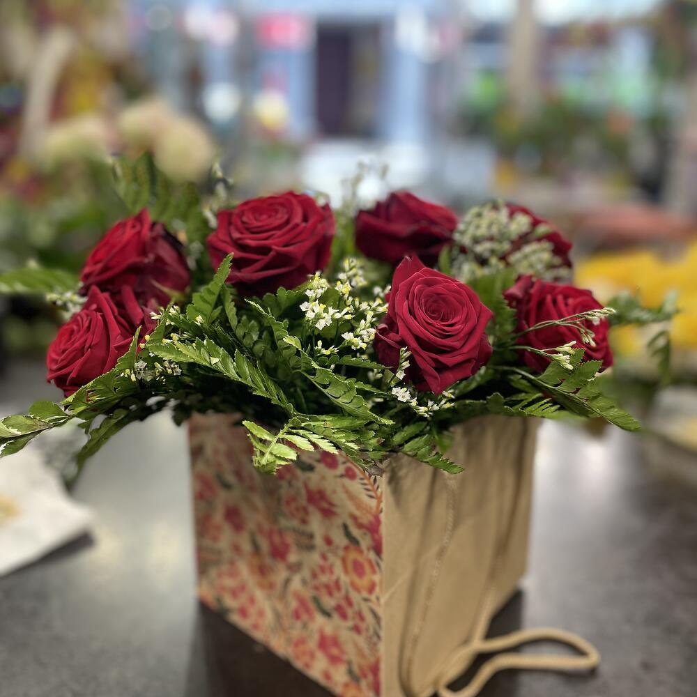 Limonium - 5 pcs rose red - 10 pcs feuillages - 10 pcs cache pots - 1 pcs emballages craft - 1 pcs carte message offert - 1 pcs