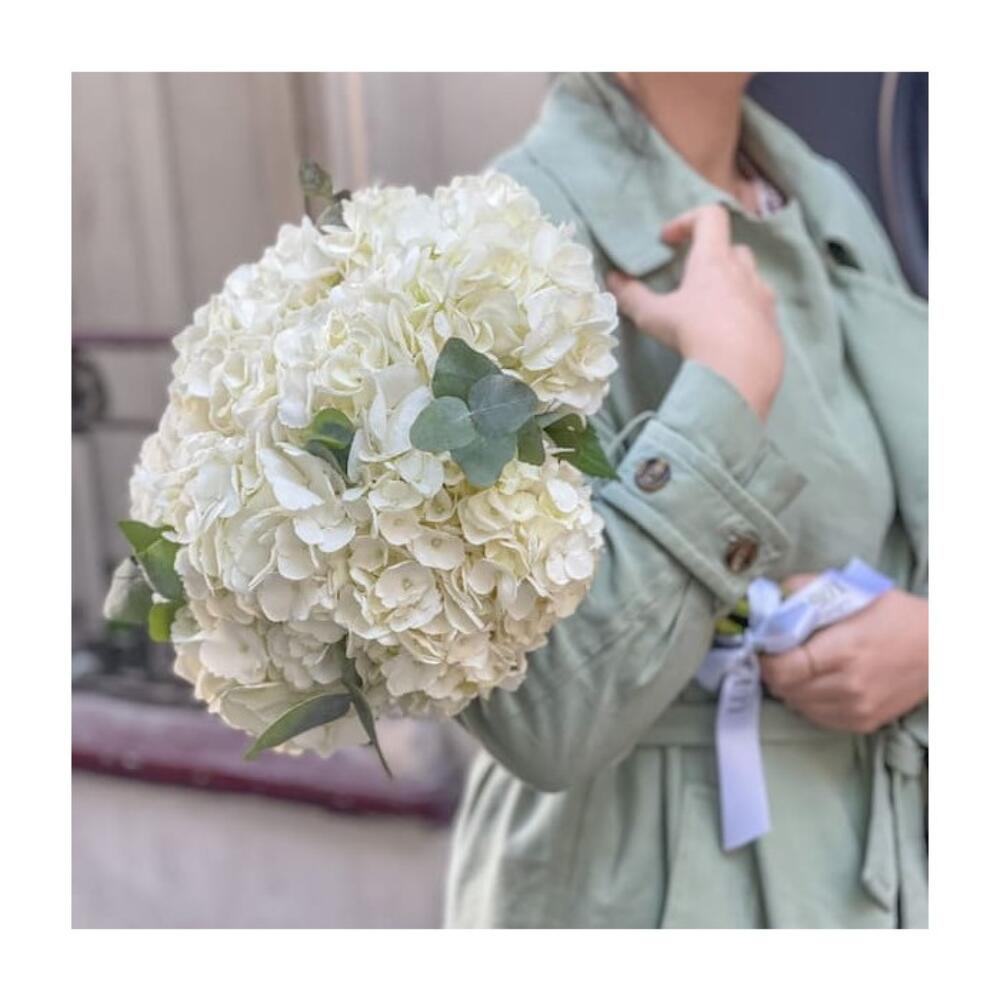 hortensias blancas - 5 pcs emballage cadeau - 3 pcs ruban satiné - 3 pcs luntisque - 5 pcs