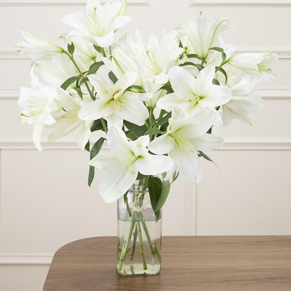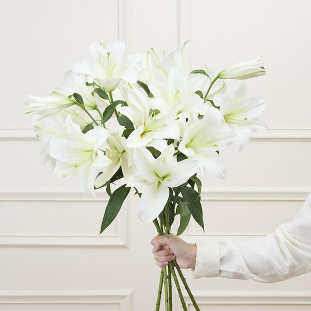 5 tiges de lys odorants, entre 10 et 15 fleurons, hauteur de 60 cm. Nous vous conseillons denlever les étamines des lys