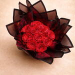 Bouquet de 10 roses rouges éternelles pailletées, sublimées par un emballage noir élégant au style couture. Chaque rose capte la lumière pour offrir un éclat intense et glamour, symbole de passion d et damour Durée de vie Les roses éternelles conservent leur beauté pendant 3 à 5 ans, sans aucun entretien, tout en gardant leur forme et leur éclat dorigine. * Conseils de conservation Pour préserver toute leur splendeur : • À conserver à labri de lhumidité • Eviter lexposition directe à la lumière et au soleil • Ne pas arroser •Le cadeau parfait