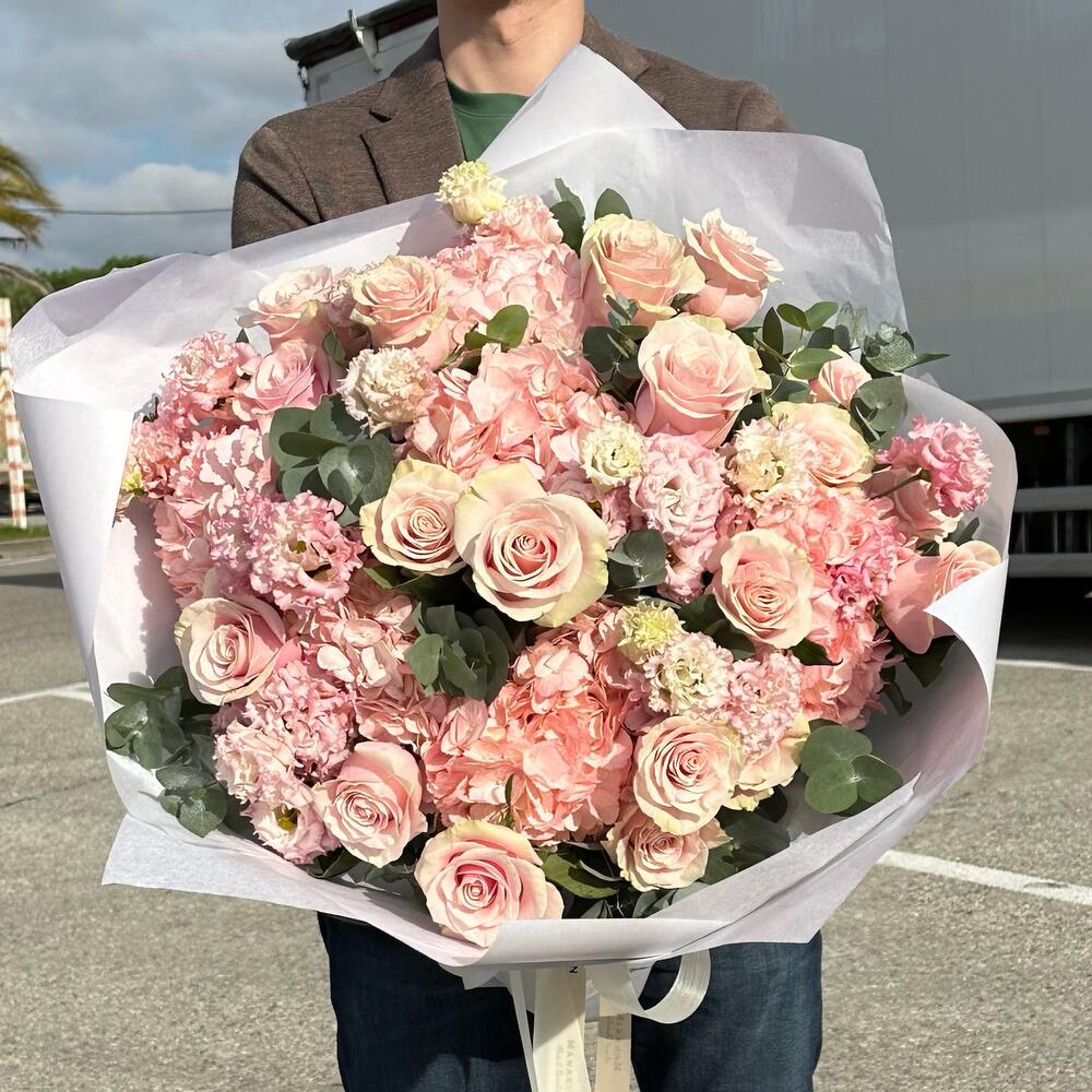 roses pink - 18 pcs pink hydrangea - 8 pcs lisiantus pink - 10 pcs