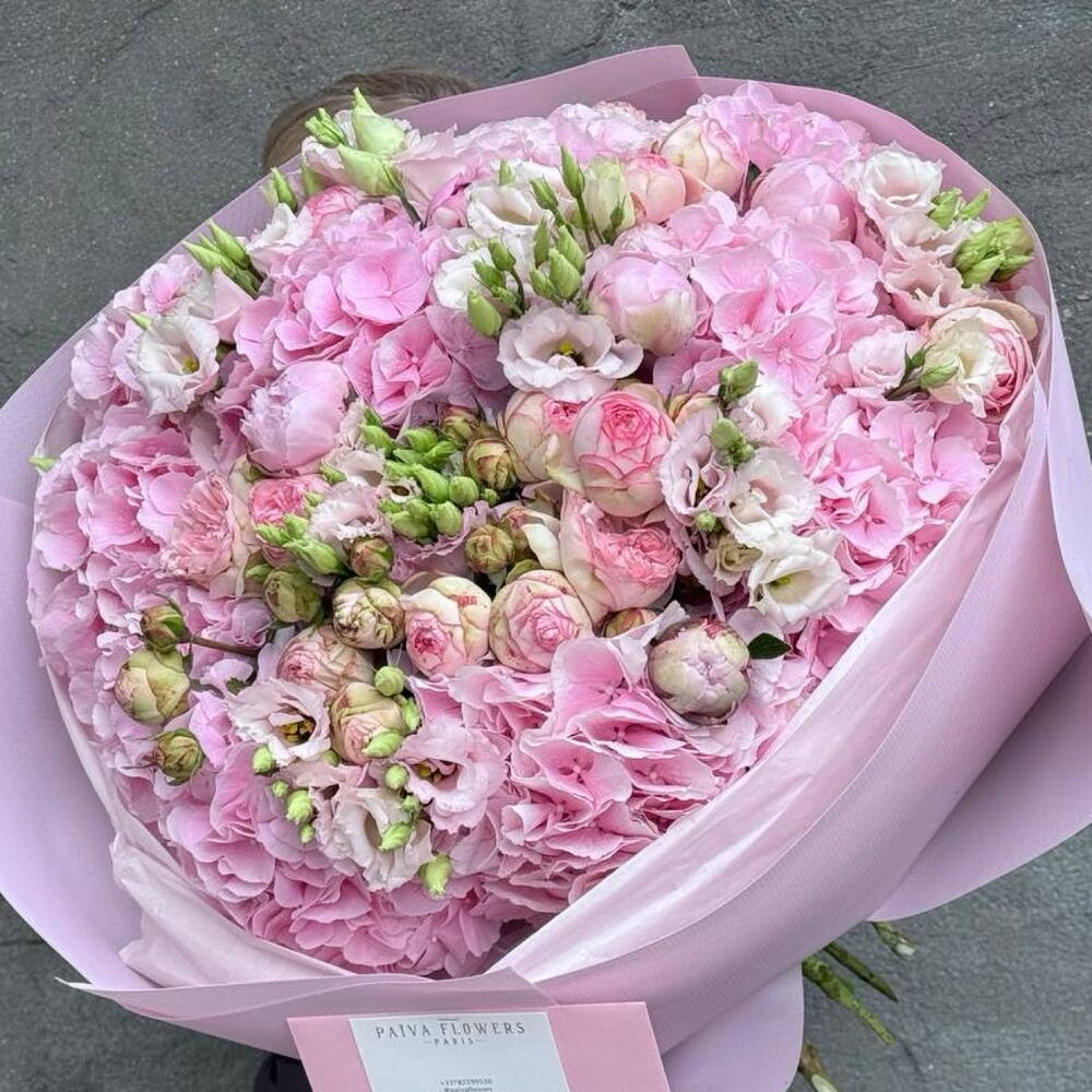 hydrangea - 10 pcs Lisianthus - 10 pcs roses - 8 pcs