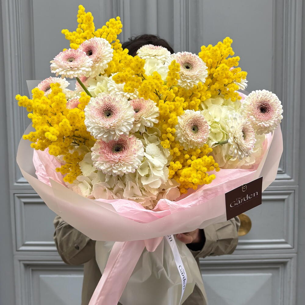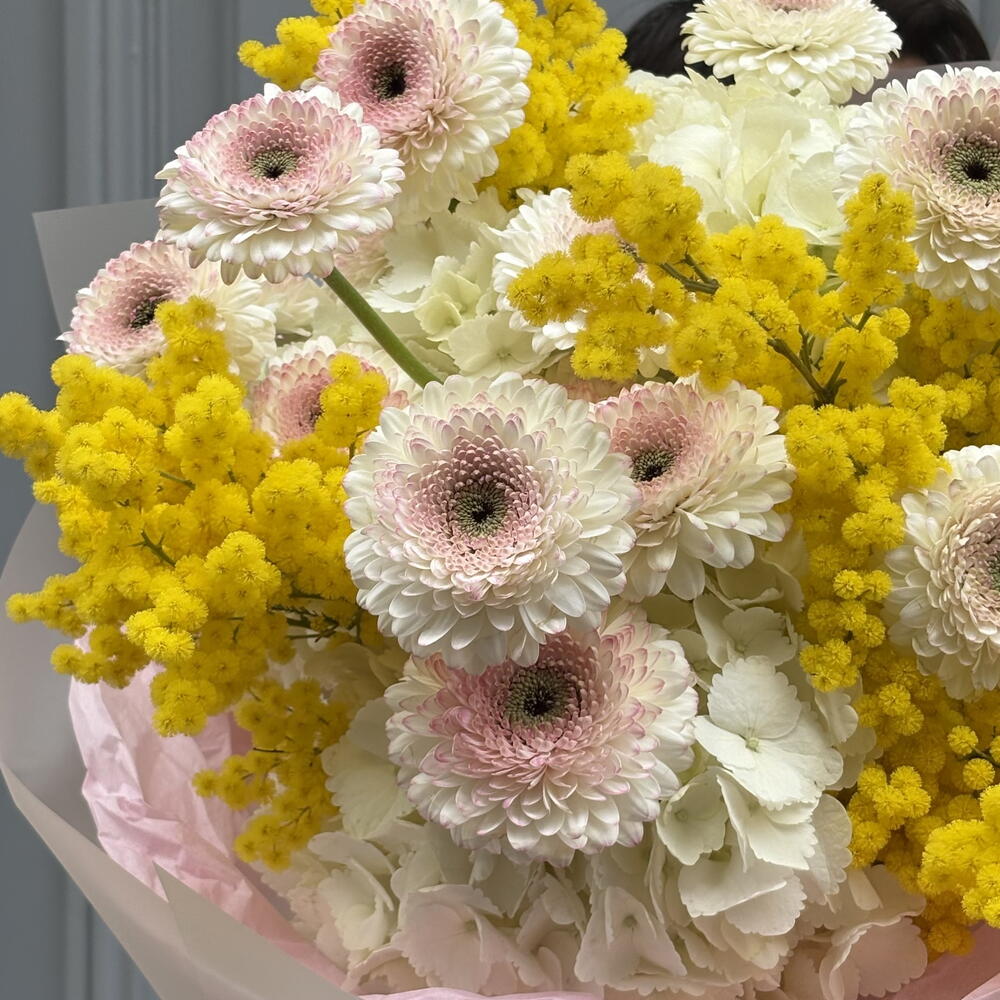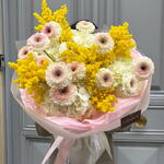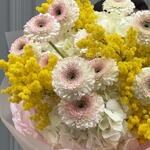 Hydrangea - 4 pcs Gerbera - 20 pcs mimosa - 2 pcs