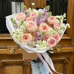 Hydrangea - 7 pcs matthiola - 20 pcs roses - 10 pcs