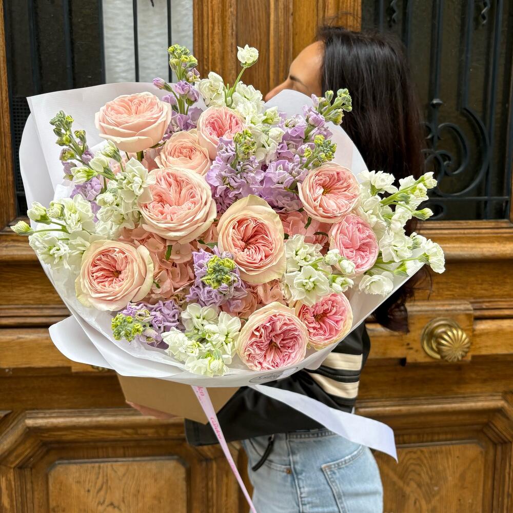 Hydrangea - 7 pcs matthiola - 20 pcs roses - 10 pcs