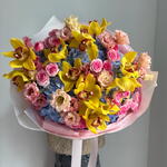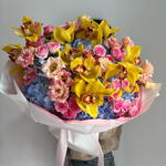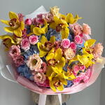 Spray rose - 8 pcs Hydrangea - 5 pcs Lisianthus - 8 pcs orchid - 1 pcs