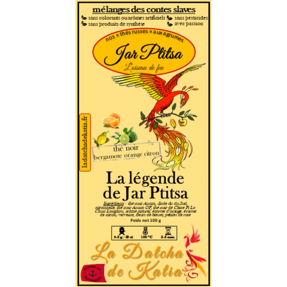 Dans sa quête d’éternité, l’oiseau de feu meurt chaque automne pour mieux renaître au printemps suivant...laissant derrière lui quelques plumes au parfum inestimable. Dégustez-les infusées dans une eau pure et entrez dans la légende. Ingrédients : thé noir Assam,- Inde du Sud, citronnelle, thé noir Assam OP, thé noir de Chine Pi Lo Chun Longkou, arôme naturel, écorces d’orange, écorces de citron, verveine, fleurs de bleuet, pétales de rose