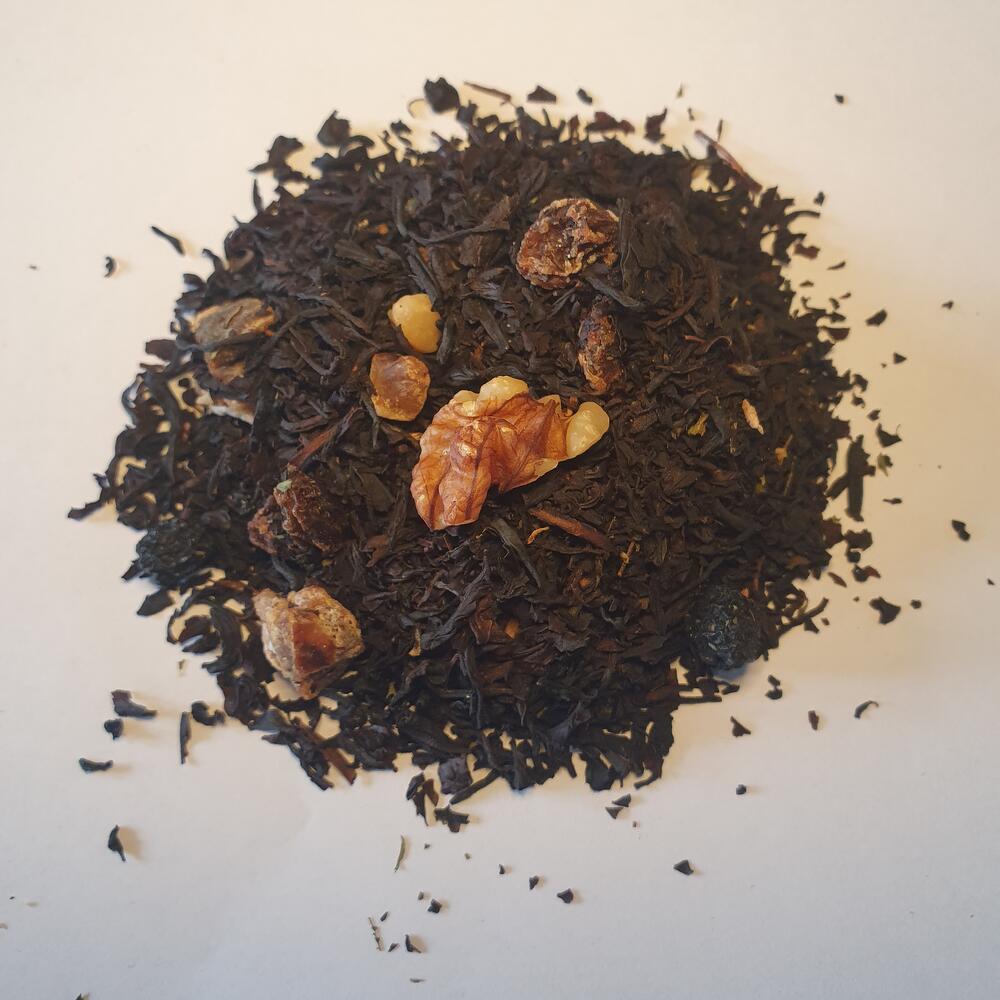 Ce roi-sorcier, souvent représenté sous les traits d’un vieux bonhomme hideux, a pour principale fonction d’enlever de force les princesses des contes, d’autant que la méthode de séduction douce s’avère inévitablement infructueuse. Il galope nu sur son cheval enchanté armé d’un sabre, il vole parfois, s’exclame «Ca sent le russe ! » à l’approche d’un être humain et s’échappe en un tourbillon... Bon, notre anti-héros a quand même un atout de poids : il est immortel ! Ou à peu de choses près. Nul ne peut tuer Koschei en visant son corps. Son âme, elle, est cachée dans une aiguille, laquelle est contenue dans un œuf, lui-même dans une cane qui est dans un lièvre, dans un coffre de fer enterré sous un chêne sur une ile parfois invisible dans l’océan...rien que ça, un vrai jeu de Matriochkas ! Tant que son âme est en lieu sûr, le sorcier nepeut mourir. Si le coffre est déterré et ouvert, le lièvre en bondira. S’il est tué, la cane s’en échappera. Quiconque cependant arriverait à prendre l’œuf tiendra Koschei en son pouvoir. Il commencera à s’affaiblir, tombera malade et perdra ses pouvoirs magiques. Lancez l’œuf, Koschei sera jeté dans la même direction, contre sa volonté. Si l’aiguille est brisée (dans certains contes, on la frappe contre le front de Koschei), celui-ci mourra illico...de vieillesse ! Pour cette raison, notre roi a une vraie hantise de la mort. Qui veut sauver la princesse ? Plaisir royal - le thé noir aux morceaux de noix/dattes/raisin Ingrédients : thé noir Assam (Inde du Sud), datte, farine de riz, raisin, griotte, arome naturel, noix, stevia