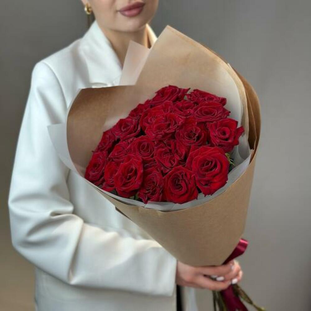 rose rouge - 21 pce emballage kraft - 1 pce
