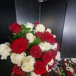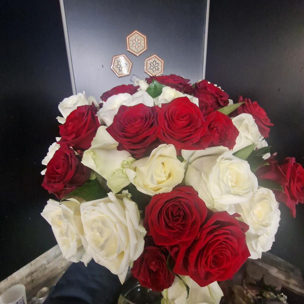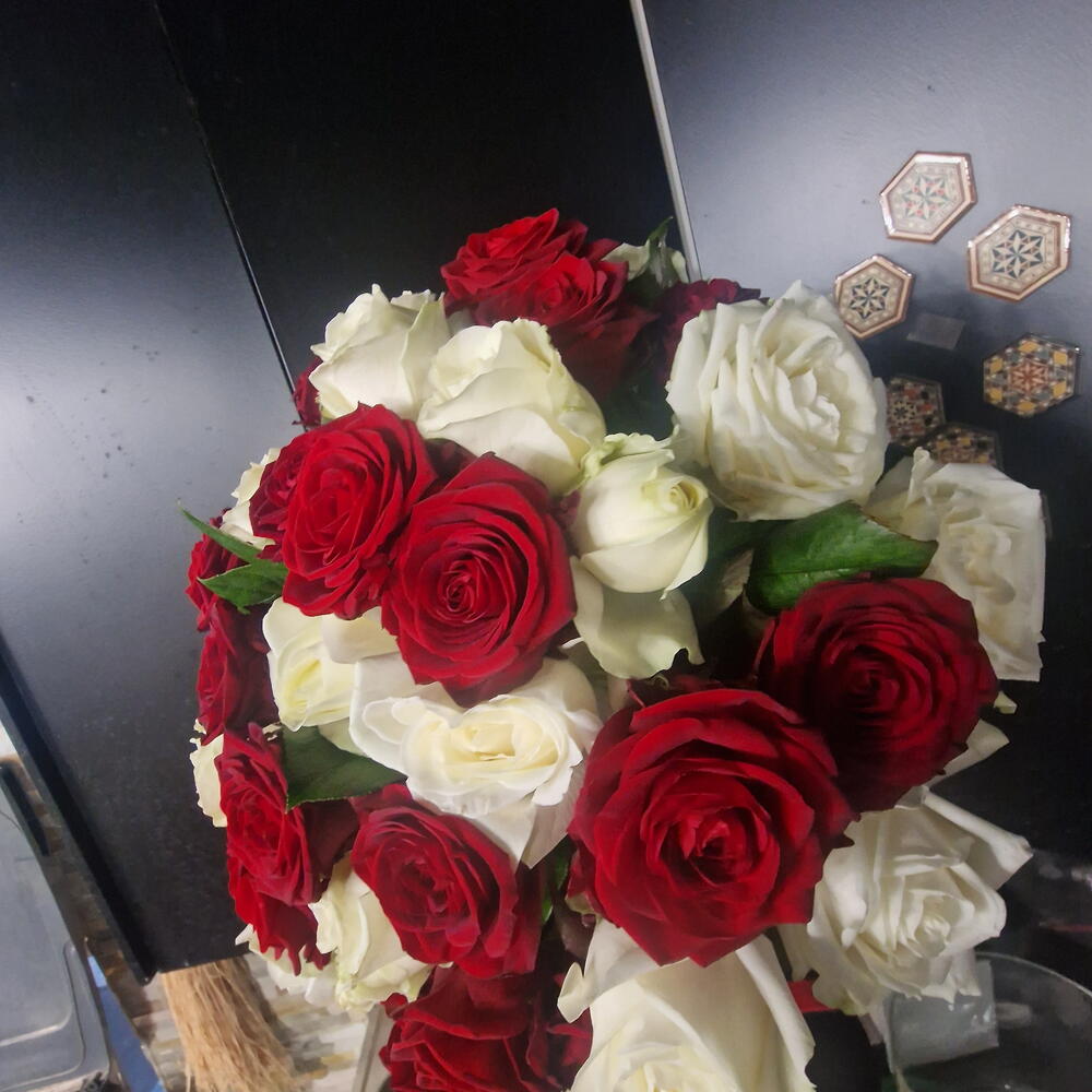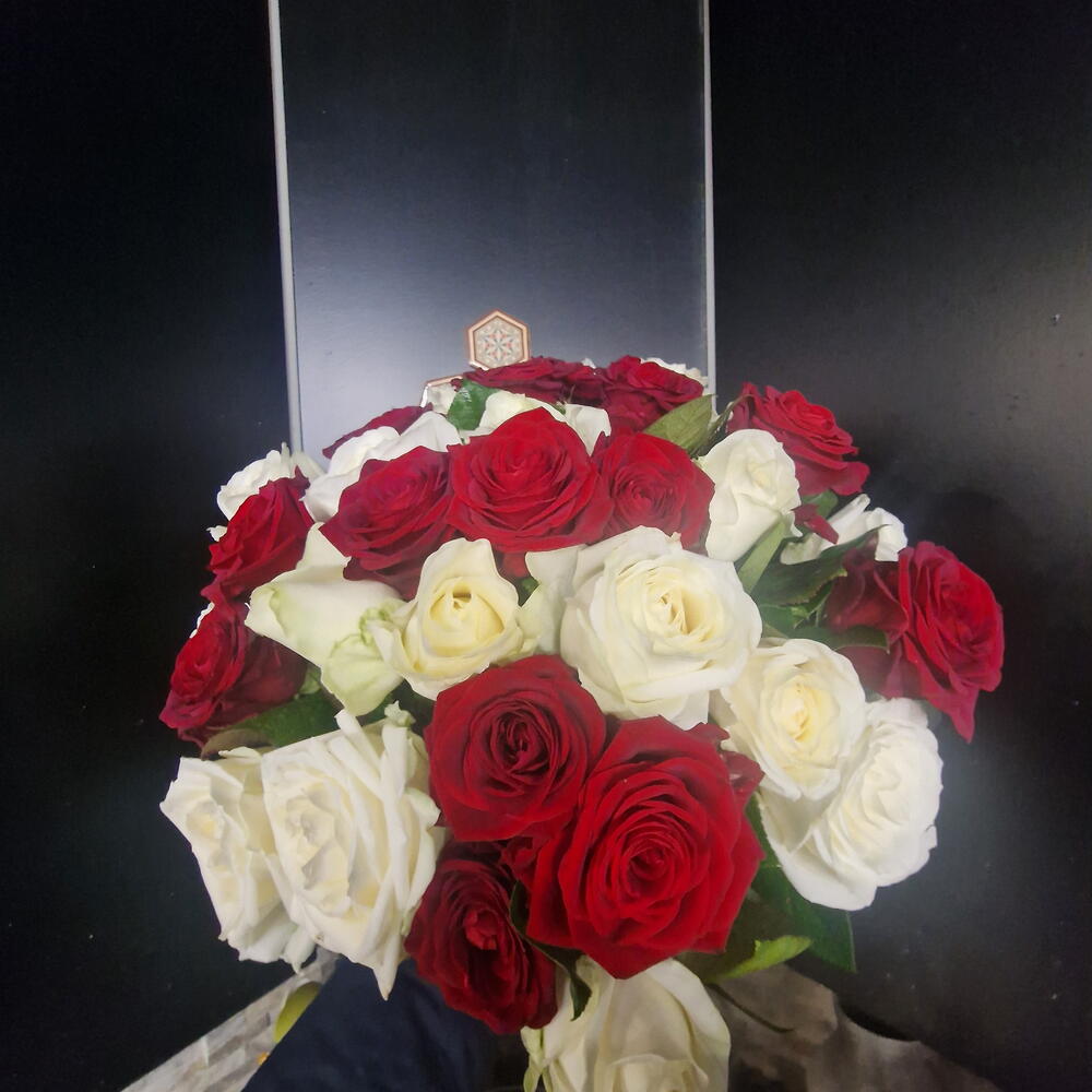 feuillage - 10 pce rose rouge - 12 pce rose blanche - 12 pce