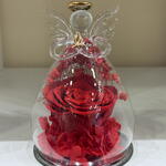 Ange en verre avec rose eternelle rouge