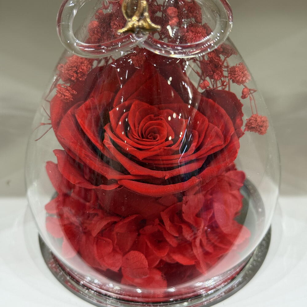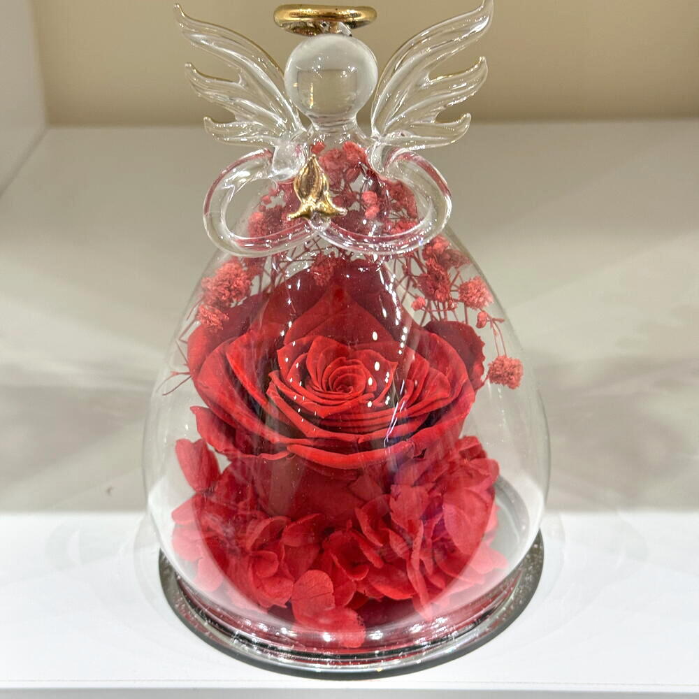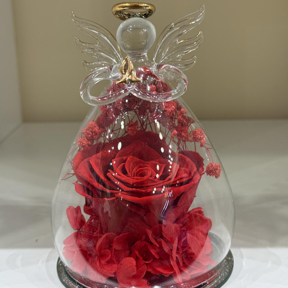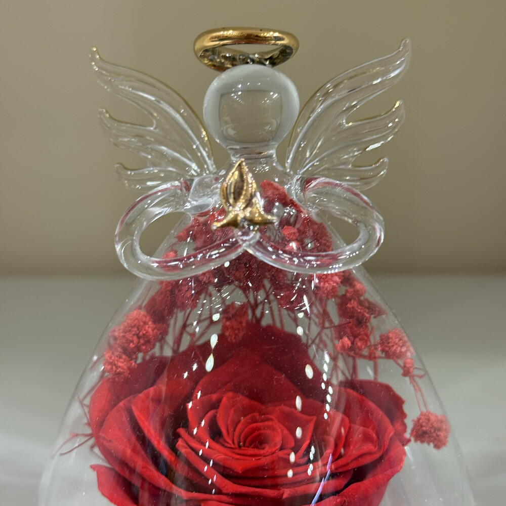 Ange en verre avec rose eternelle rouge