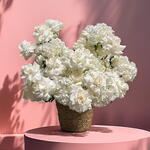 Pure elegance in full bloom—this exquisite flower basket features 20 lush white hydrangeas and 35 hand-reflexed white roses, carefully opened for extra volume and beauty. A stunning blend of softness and sophistication, perfect for making any moment truly unforgettable.