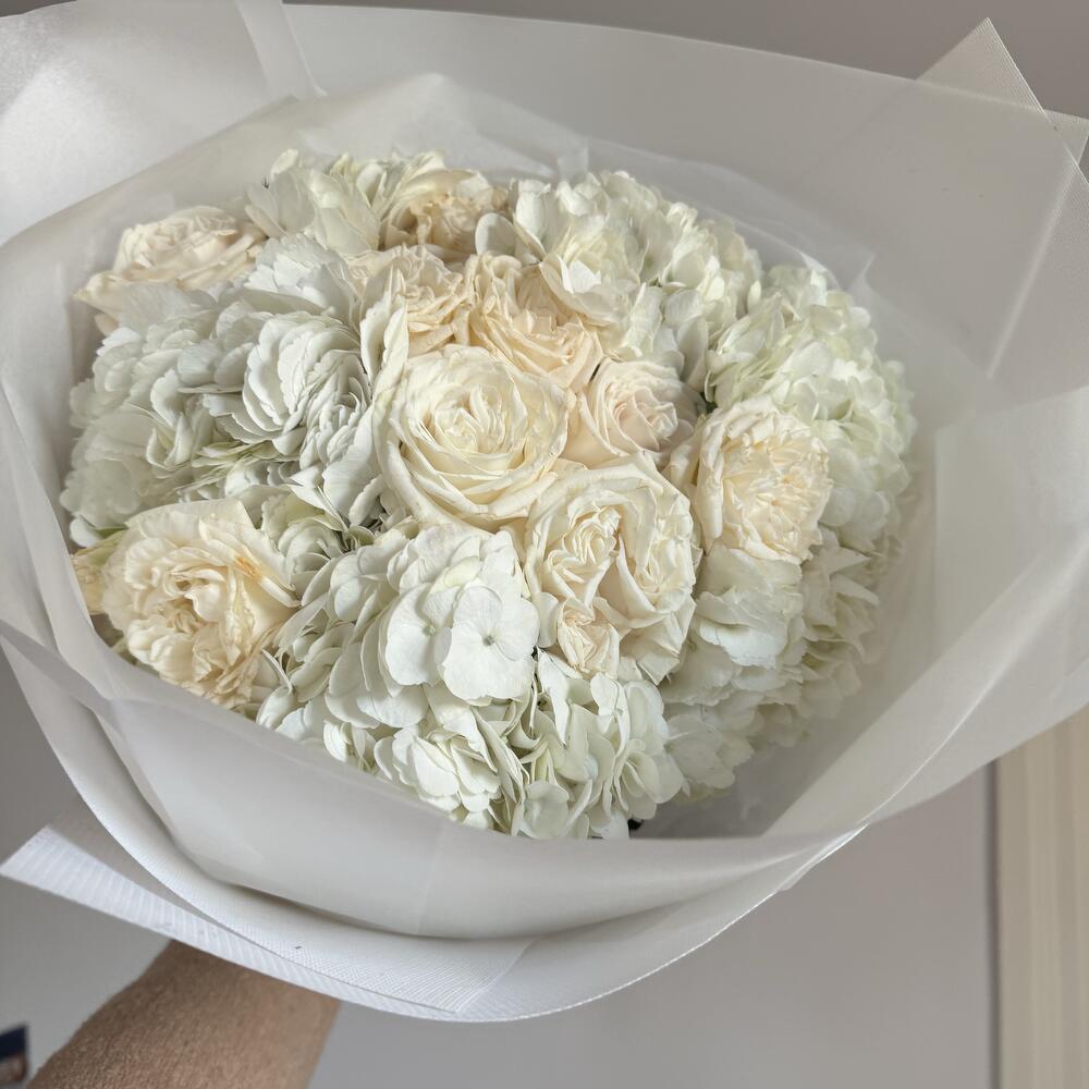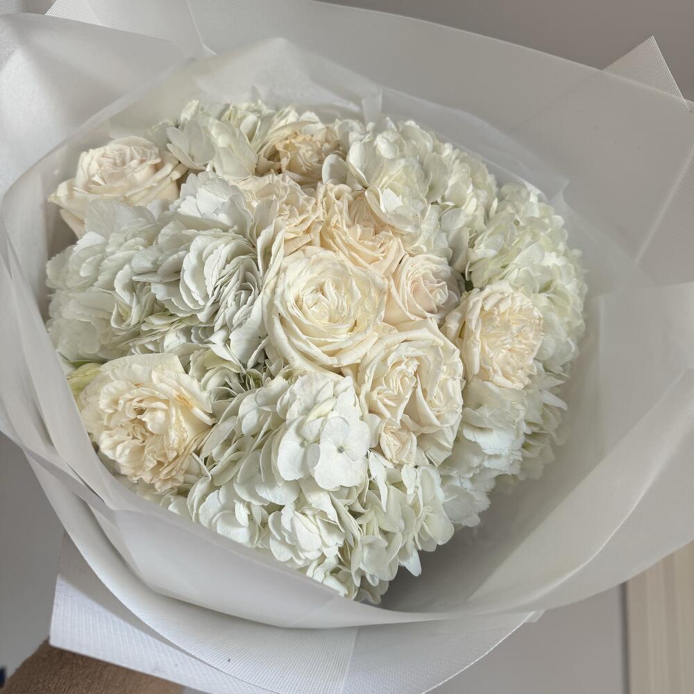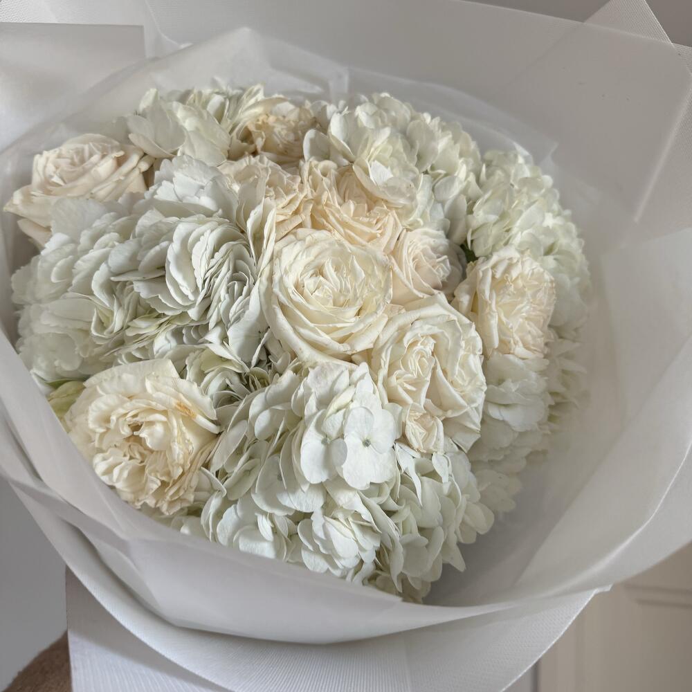 Ribbon - 1 pce hortensia - 5 pce wrapping paper - 4 pce roses - 7 pce silk paper - 3 pce