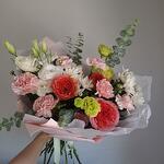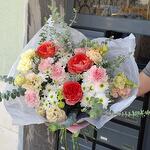 Un bouquet exquis, empreint de fraîcheur et dharmonie de nuances. De grandes roses apportent une touche lumineuse à la composition, tandis que de délicats œillets apportent légèreté et douceur. Ce bouquet sera le cadeau idéal pour exprimer tendresse, attention et bien-être, que ce soit pour un anniversaire, une fête ou tout simplement pour un moment spécial.