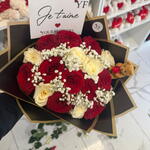 gypsophile - 5 pce roses blanches - 10 pce roses rouges - 10 pce