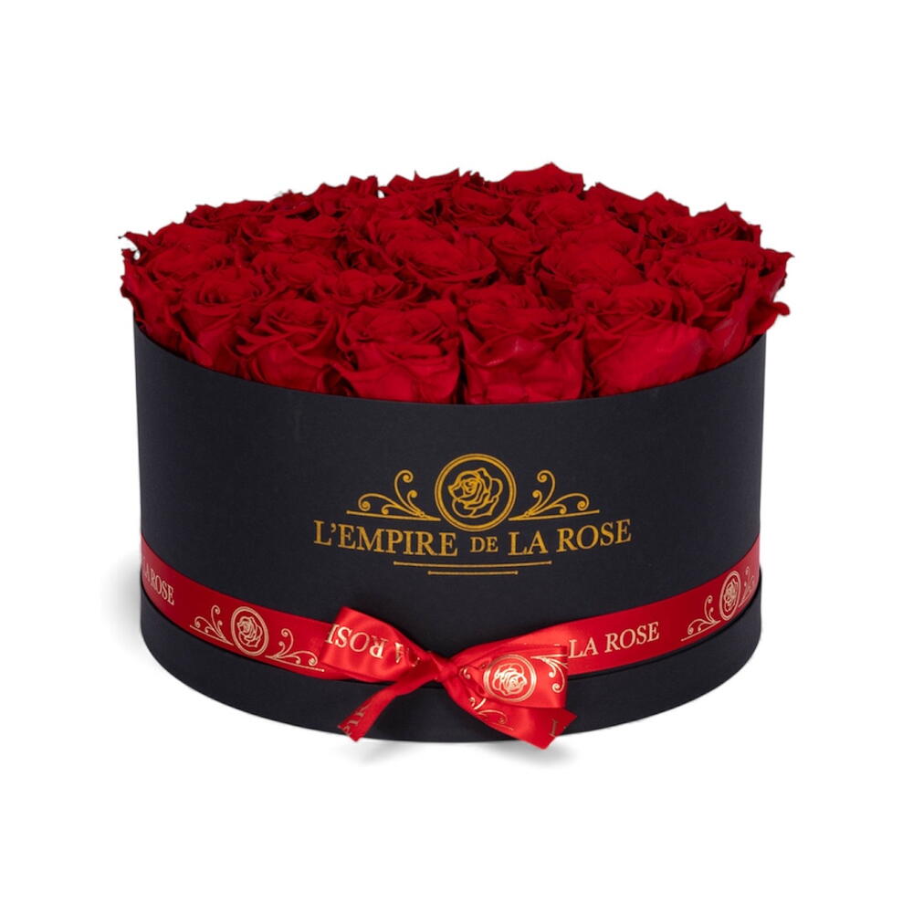 Box romantic, and unforgettable. Our Eternal Red Luxury Box features 33 premium stabilized red roses, perfectly arranged in an elegant black hat box for a powerful and timeless look. A true statement of love and luxury — designed to stay flawless for months with no watering needed.