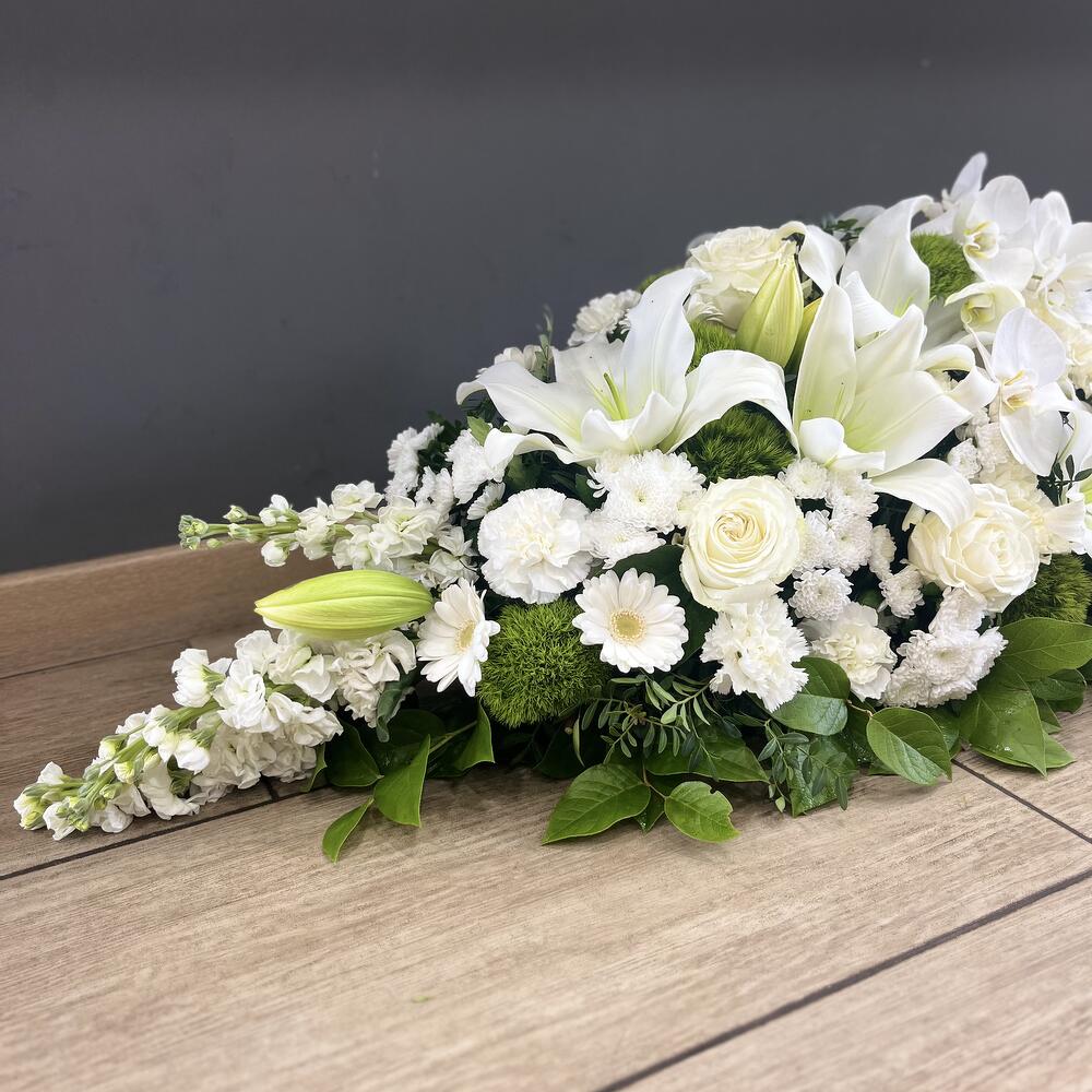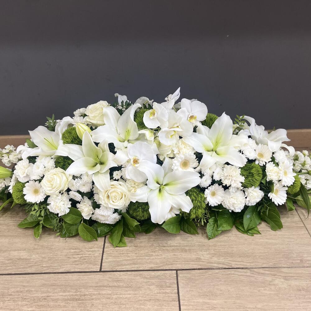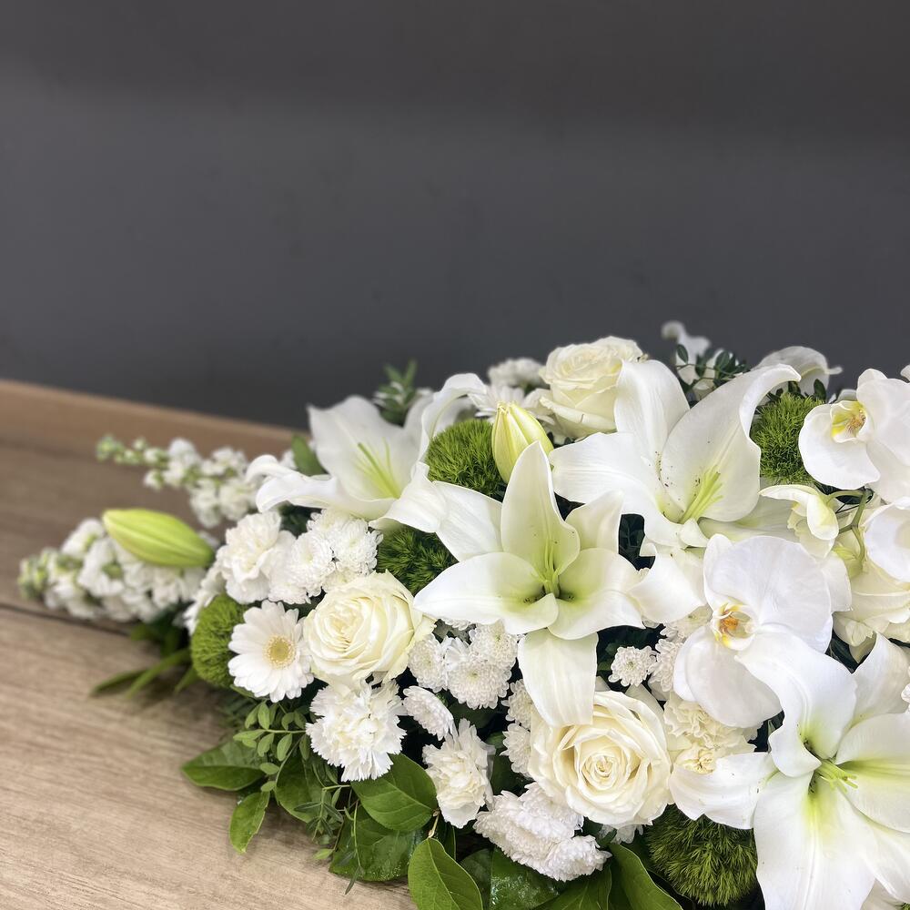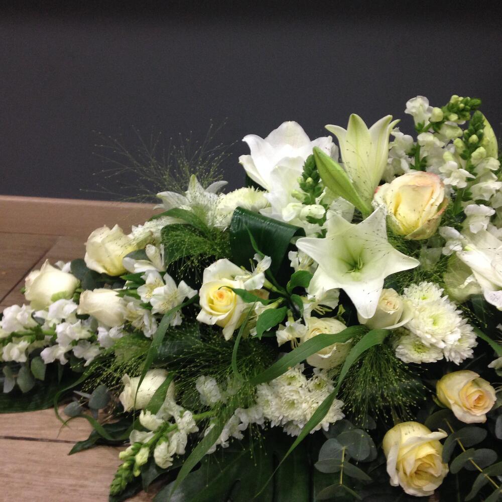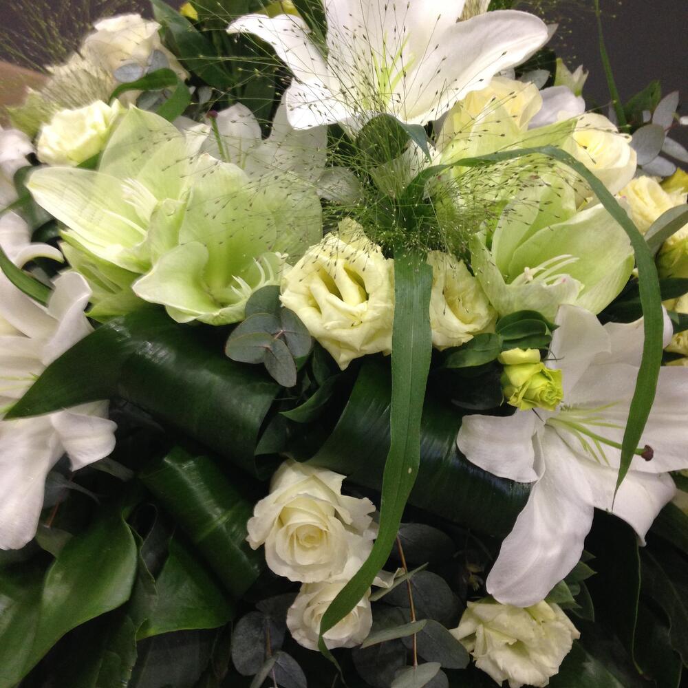 Que ce soit pour un enterrement ou une cérémonie commémorative, notre dessus de cercueil apportera une touche de beauté et de douceur à ce moment empreint de tristesse et de recueillement. Notre artisan fleuriste saura vous conseiller et vous accompagner dans le choix des fleurs et des couleurs pour que cet hommage floral soit à la hauteur de vos émotions et de votre amour pour le disparu. Disponible en plusieurs déclinaisons de couleurs, notre dessus de cercueil peut sadapter à tous les goûts et à toutes les sensibilités. Que vous souhaitiez opter pour des tons sobres et discrets ou des teintes plus vives et lumineuses, nous saurons créer pour vous un arrangement floral personnalisé et émouvant. Confectionné à partir de fleurs fraîches et de qualité, notre dessus de cercueil est un véritable témoignage daffection et de respect envers le défunt. Chaque fleur est choisie avec minutie pour composer un ensemble harmonieux et équilibré, reflétant toute la tendresse et la compassion que vous souhaitez exprimer.