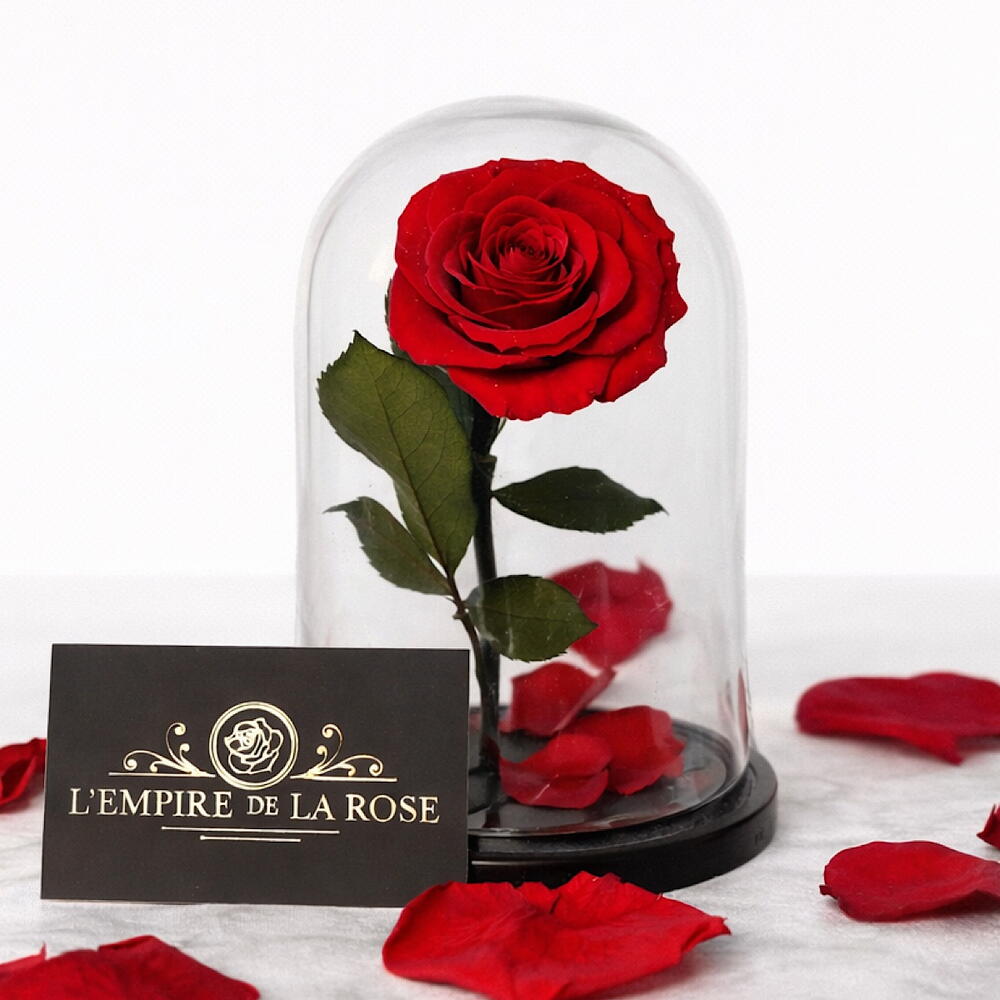 in timeless elegance with our Eternal Rose Dome, a symbol of everlasting love and refined luxury. Encased under a crystal-clear glass dome, this exquisite preserved red rose is delicately crafted to maintain its beauty for years. Perfect for Valentine’s Day, anniversaries, or unforgettable romantic gestures, this piece embodies sophistication, passion, and prestige. A true statement of luxury for those who desire the extraordinary.