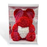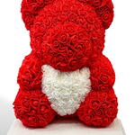 Ours en roses – Édition Rouge Blanche Offrez un cadeau inoubliable avec cet adorable ours entièrement composé de roses artificielles d’une grande qualité. Avec son corps rouge passion et son cœur blanc délicat, il incarne parfaitement l’amour, la tendresse et l’élégance. Parfait pour la Saint-Valentin, un anniversaire, une déclaration d’amour ou simplement pour faire plaisir à quelqu’un de spécial. Caractéristiques : • Hauteur : environ 40 cm • Roses en mousse douce, durables et sans entretien • Livré dans une boîte cadeau élégante (optionnelle) • Ne se fane jamais — un souvenir éternel