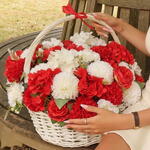Panier avec des fleurs artificielles