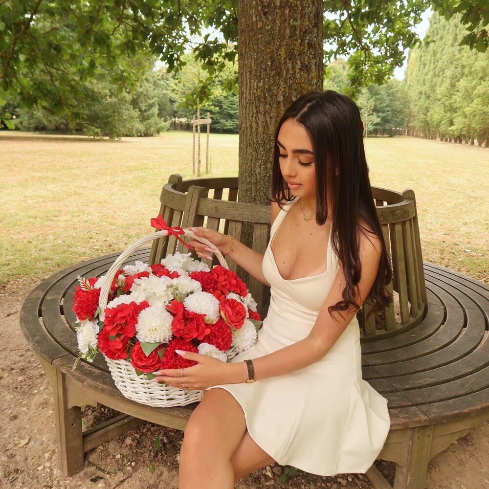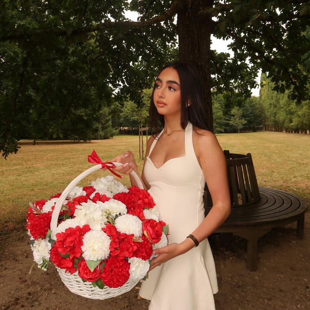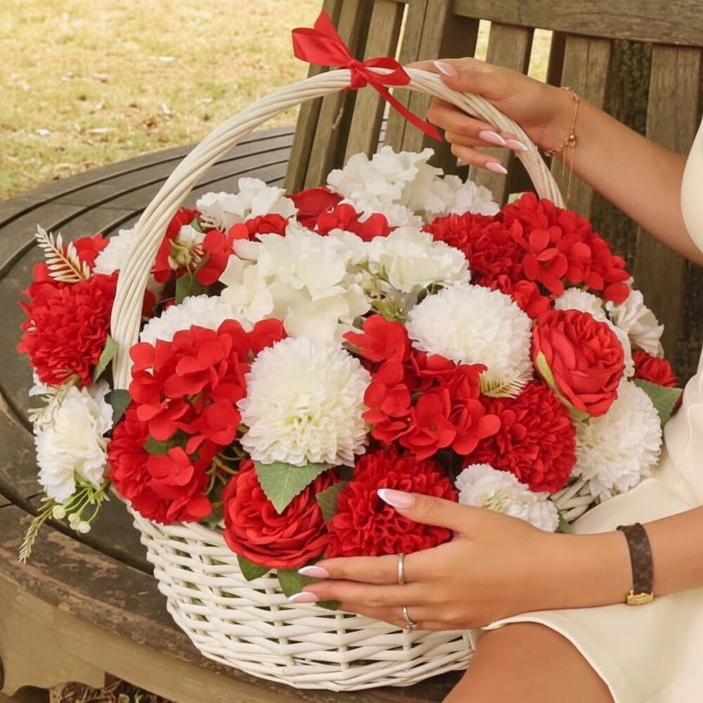 Cette élégante composition florale artificielle en panier attire immédiatement le regard grâce à son contraste raffiné de rouge et de blanc. Les fleurs réalistes imitent parfaitement des fleurs fraîches, tout en conservant leur beauté durablement. Le panier en osier blanc avec anse et ruban rouge apporte une touche chaleureuse et décorative. Cette composition est idéale pour décorer un intérieur, une terrasse couverte ou pour offrir en cadeau sans contrainte d’entretien. Les matériaux de haute qualité garantissent une excellente tenue des couleurs dans le temps. Aucun arrosage ni soin particulier n’est nécessaire : il suffit d’éviter une exposition prolongée au soleil direct et de dépoussiérer délicatement si besoin. Une solution parfaite pour une décoration élégante et durable.