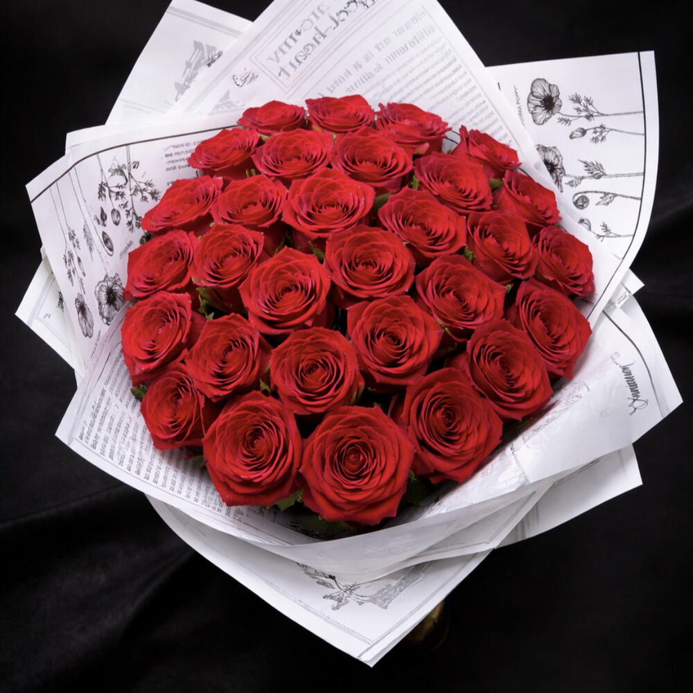 Bouquet composé de 31 roses 🌹 rouges fraîches