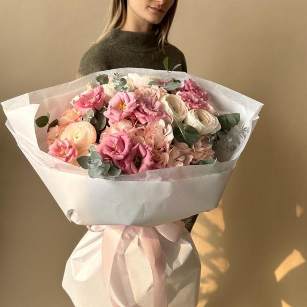 renoncule Hanoï - 8 pce hortensia rose - 4 pce lisiantus rose - 4 pce