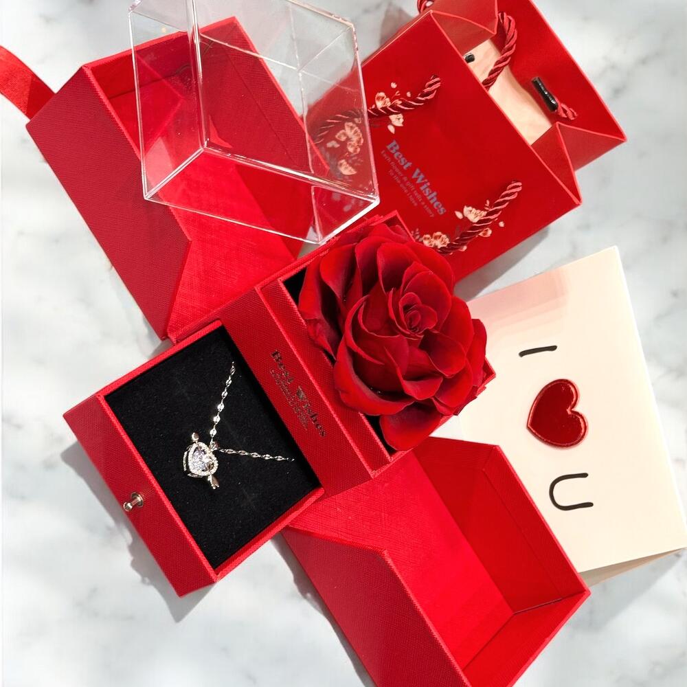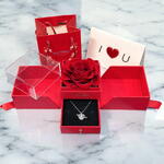 La composition est faite avec de vraies roses vivantes stabilisées avec bijoux Devant vous un signe parfait d’attentionpour une femme exceptionnelle, qui va émouvoir son cœur