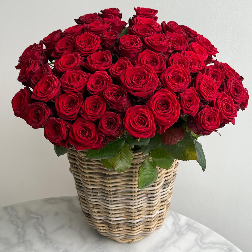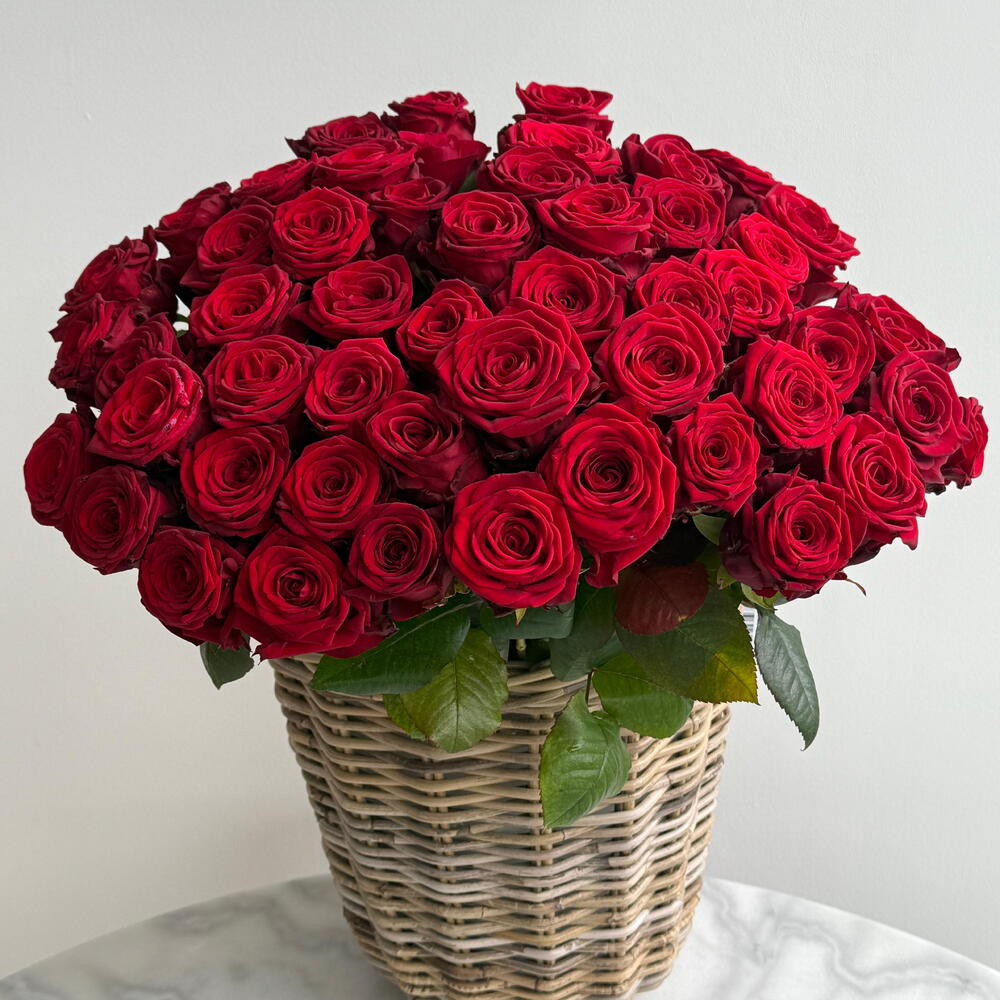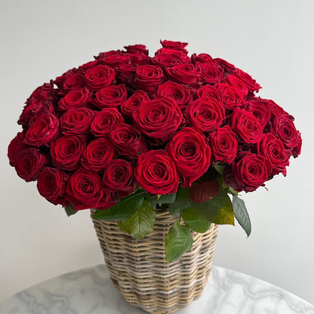 Basket - 1 pce Mousse - 6 pce tissue paper - 6 pce roses - 101 pce