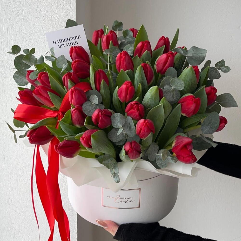 Tulips - 50 pce eucalyptus - 10 pce