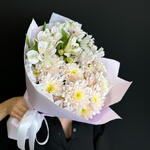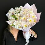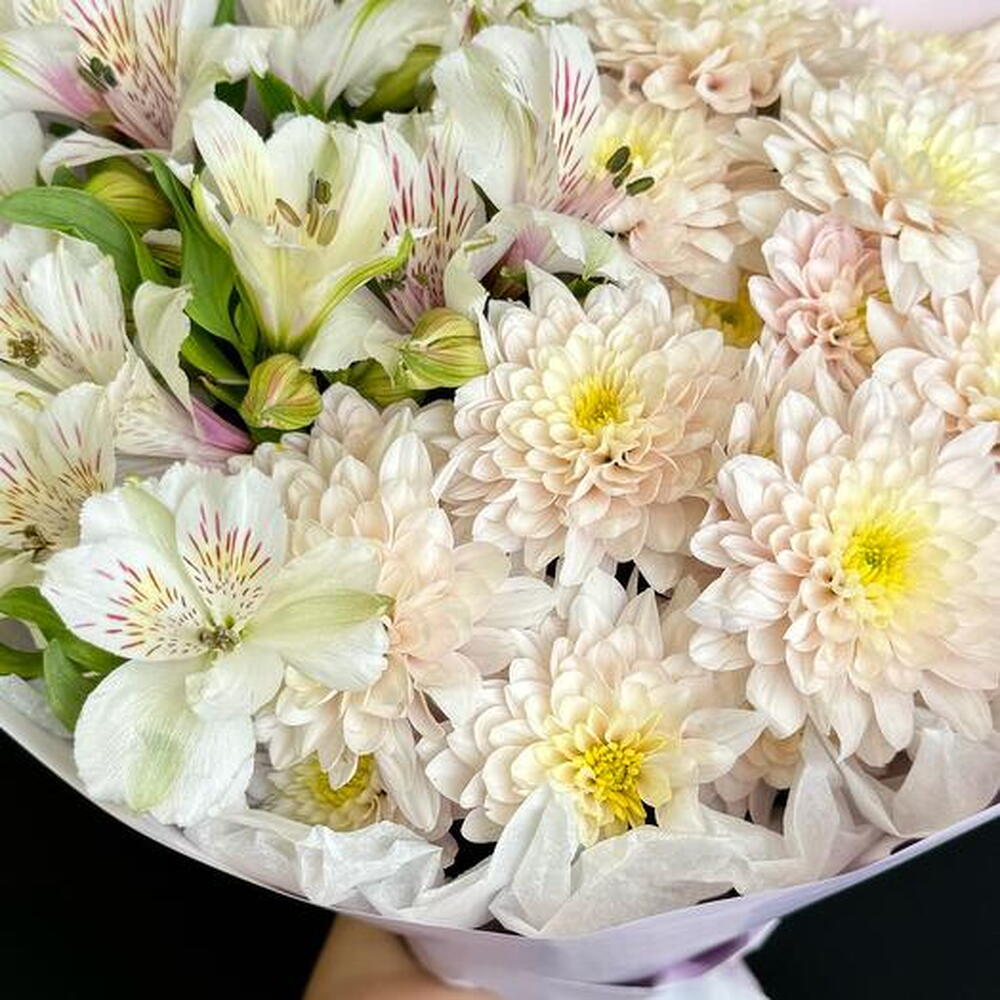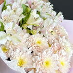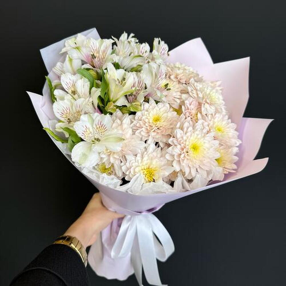 Satin ribbon - 1 pce Alstroemeria - 4 pce chrysanthemum bush - 3 pce design packaging - 1 pce