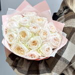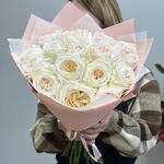 This wonderful monobouquet of 15 White OHara white fragrant roses is a true symphony of purity and grace. Each rose bud is perfectly formed and emits a delicate and attractive fragrance. This bouquet will be a wonderful gift for any special occasion or just to bring joy and a smile.