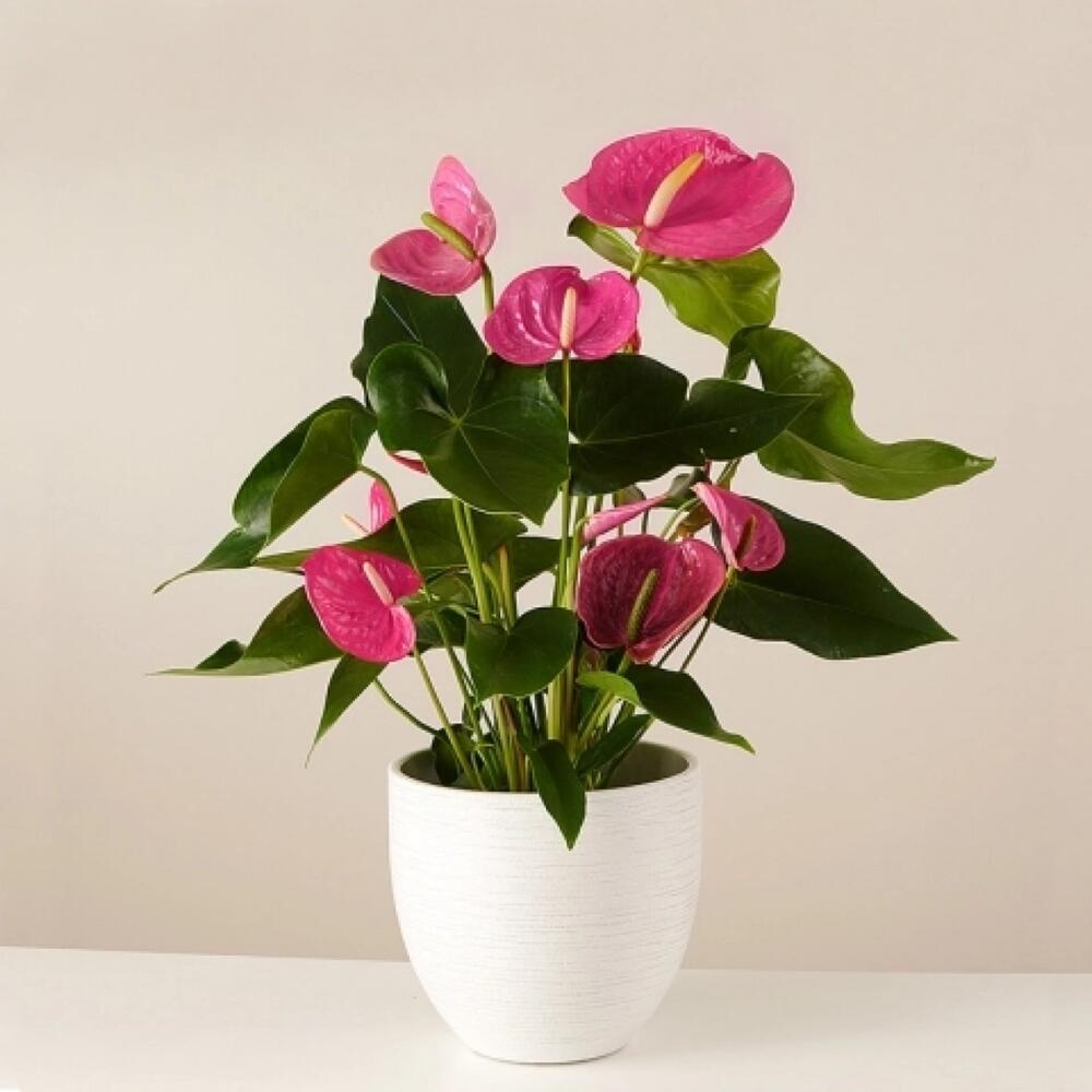 Cet Anthurium, aussi appelé «fleur de flamant rose», est une plante tropicale élégante et raffinée. Avec ses fleurs éclatantes en forme de cœur dans une teinte rose vibrante et ses feuilles vertes luisantes, cette plante ajoute une touche exotique et moderne à tout intérieur. Sa beauté unique et durable en fait un choix parfait pour un cadeau ou pour embellir votre espace de vie.