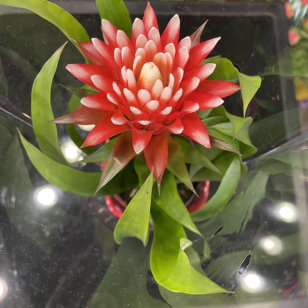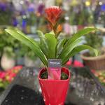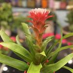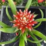 Guzmania minor - Plante épiphyte rustique, résistante en appartement, vivace toujours verte, elle fleurit une seule fois dans son existence; les feuilles lancéolées sont de couleur verte; les fleurs regroupées en épi au centre de la rosette de feuilles sont de couleur rouge ou orange.