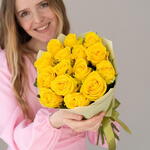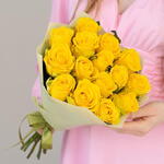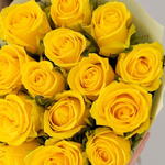 Brighten any occasion with our bouquet, featuring 15 vibrant yellow roses. Each rose radiates warmth and joy, symbolizing friendship, happiness, and new beginnings. Perfect for birthdays, celebrations, or simply to bring a smile to someones face, this bouquet exudes positivity and cheer. The striking yellow blooms make a bold and beautiful statement, creating a memorable and uplifting gift that is sure to delight.