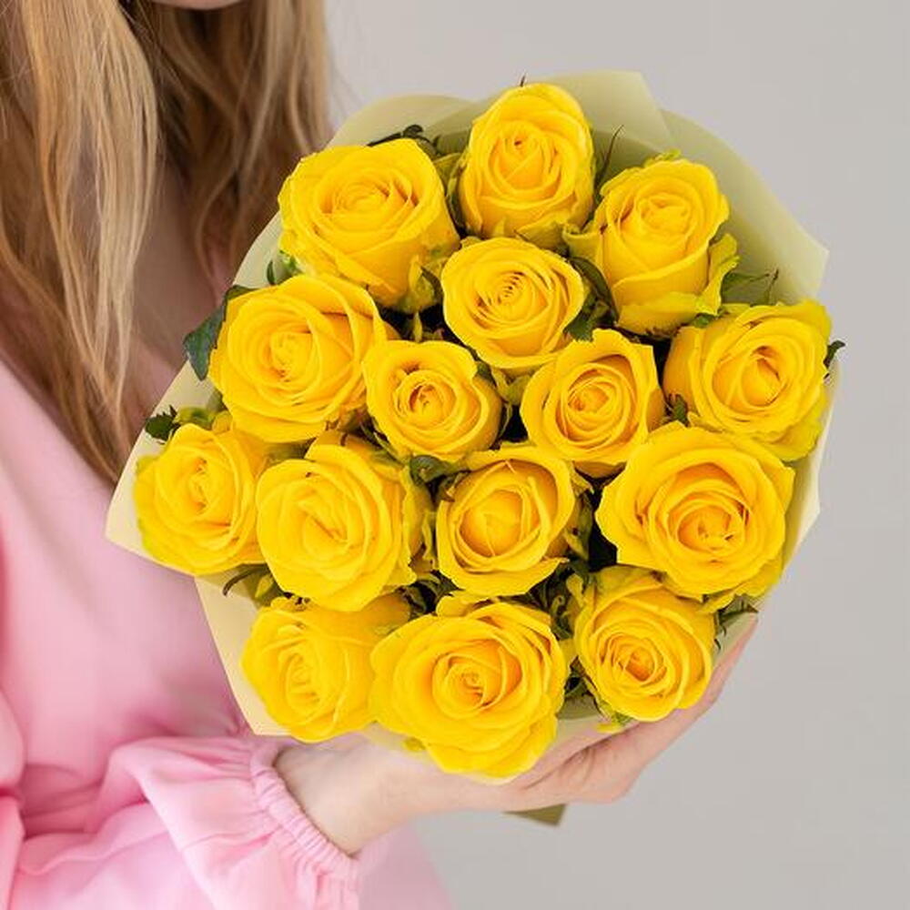 Brighten any occasion with our bouquet, featuring 15 vibrant yellow roses. Each rose radiates warmth and joy, symbolizing friendship, happiness, and new beginnings. Perfect for birthdays, celebrations, or simply to bring a smile to someones face, this bouquet exudes positivity and cheer. The striking yellow blooms make a bold and beautiful statement, creating a memorable and uplifting gift that is sure to delight.
