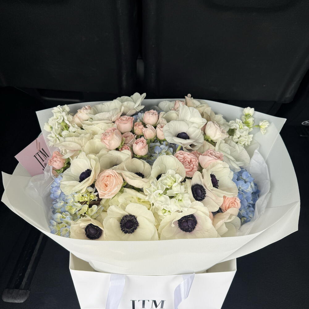 Spray rose - 10 шт. hortensia - 5 шт. matthiola - 4 шт. anémone - 20 шт.
